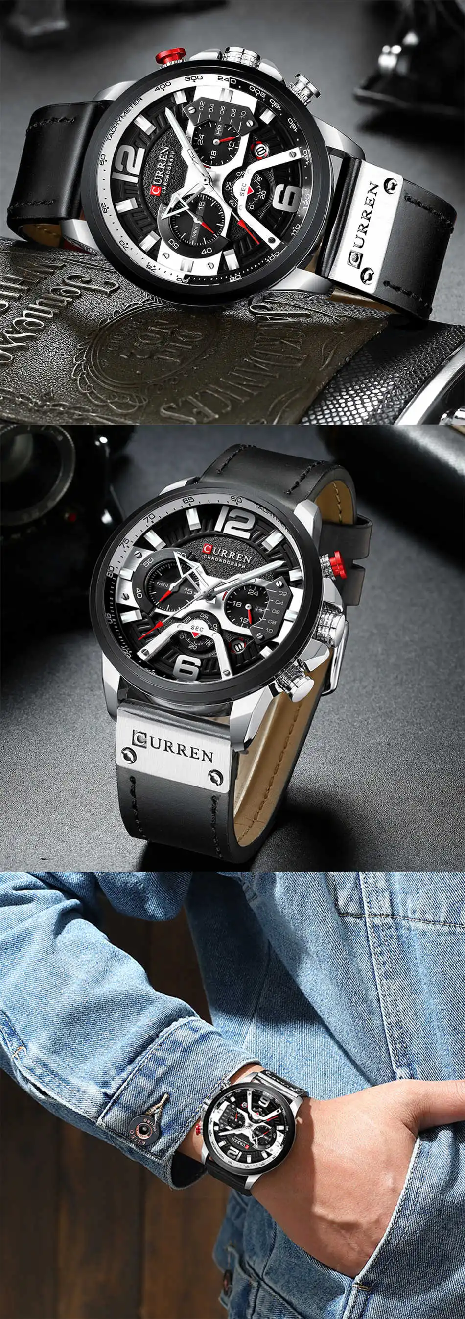 Часы CURREN мужские, повседневные, классические, армейские, с кожаным ремешком