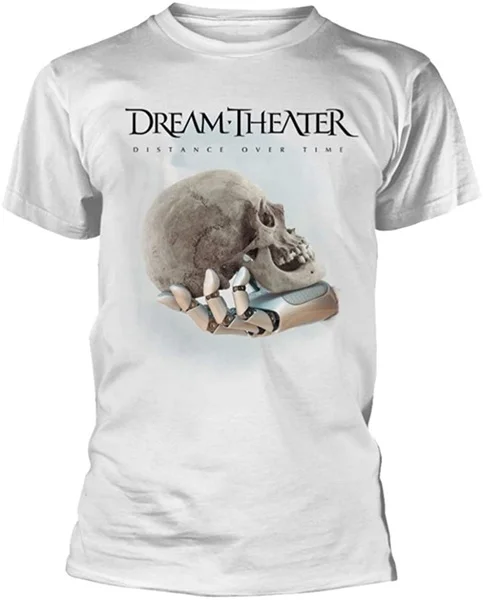 Футболка Dream Theater с надписью расстояние со временем (обложка) (белая)