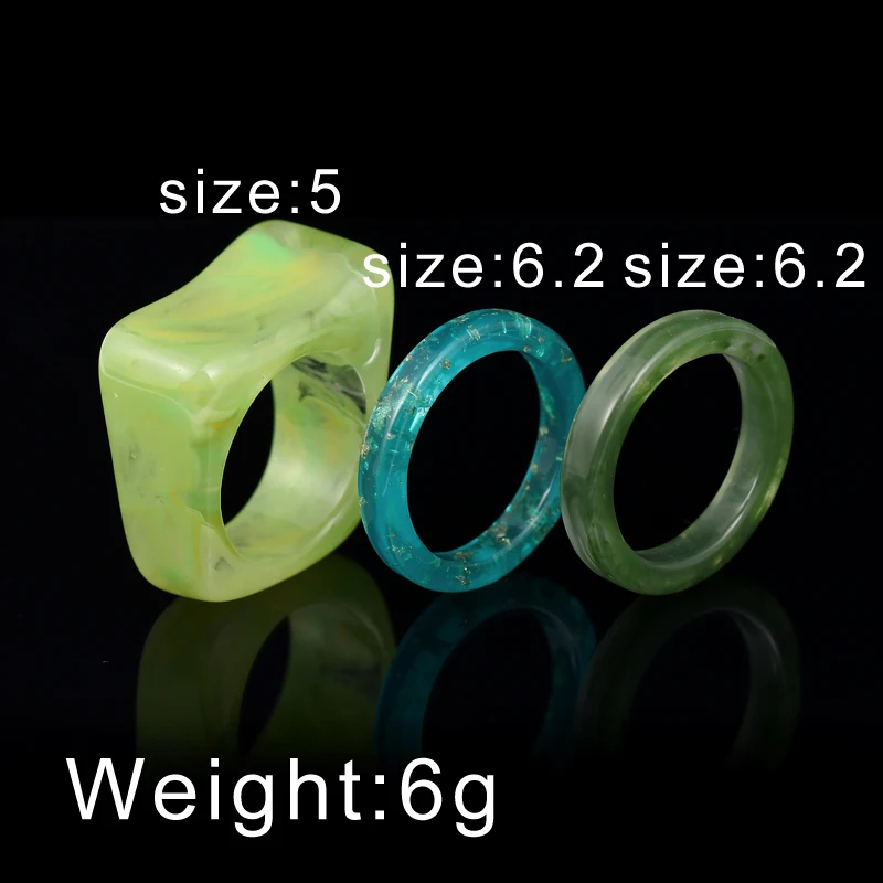 Количество: 3 шт.Размер кольца: 6,2 или 5Материал: смола(1 мм = 0,0393 дюйма, 1 дюйм = 25,4 мм)