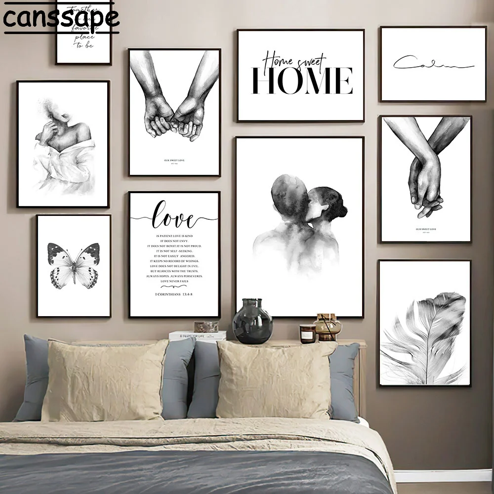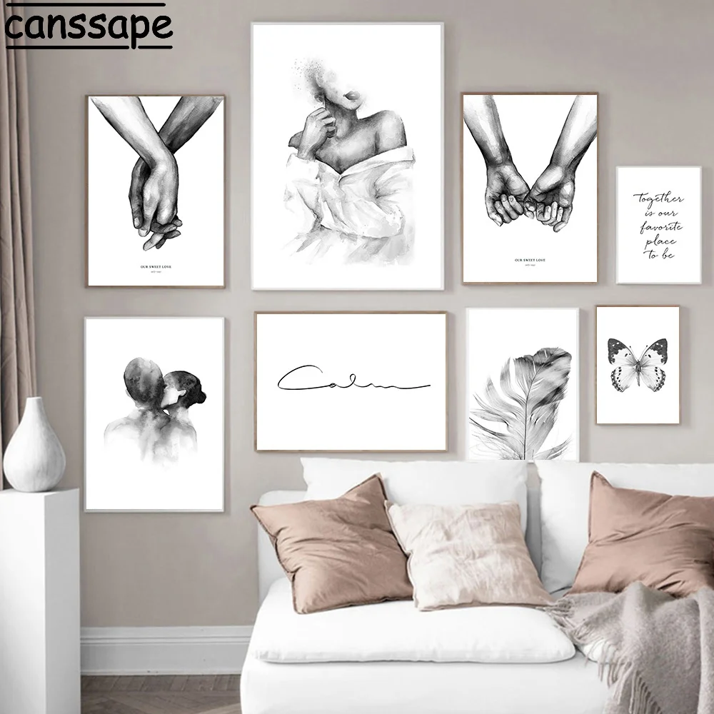 Любовь постер пара держа руки Живопись черный и белый стены искусст...