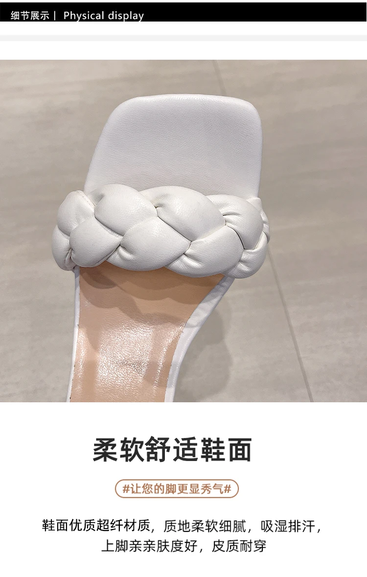 Шлепанцы женские кожаные, прозрачные, на высоком каблуке, с квадрат...