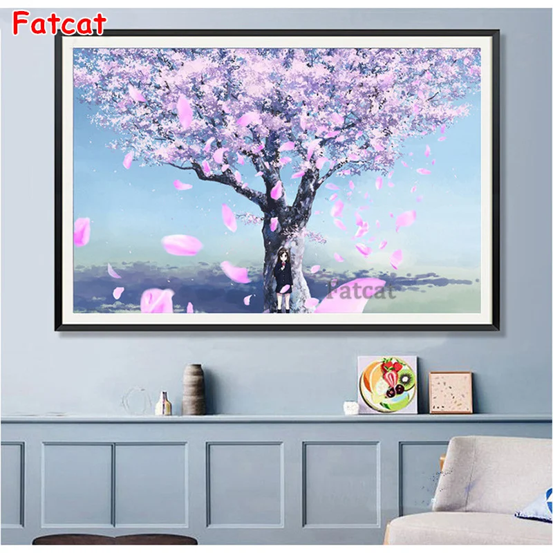 Алмазная живопись сделай сам 5D, вышивка крестиком, вишневый цвет, дерево, пейзаж, алмазная вышивка Стразы, 3d картина, наклейки, декор PP832