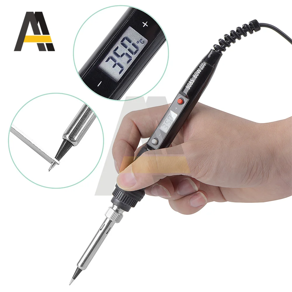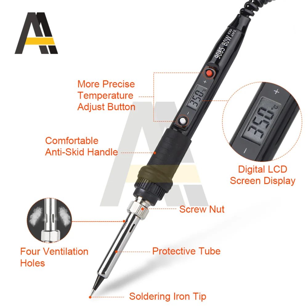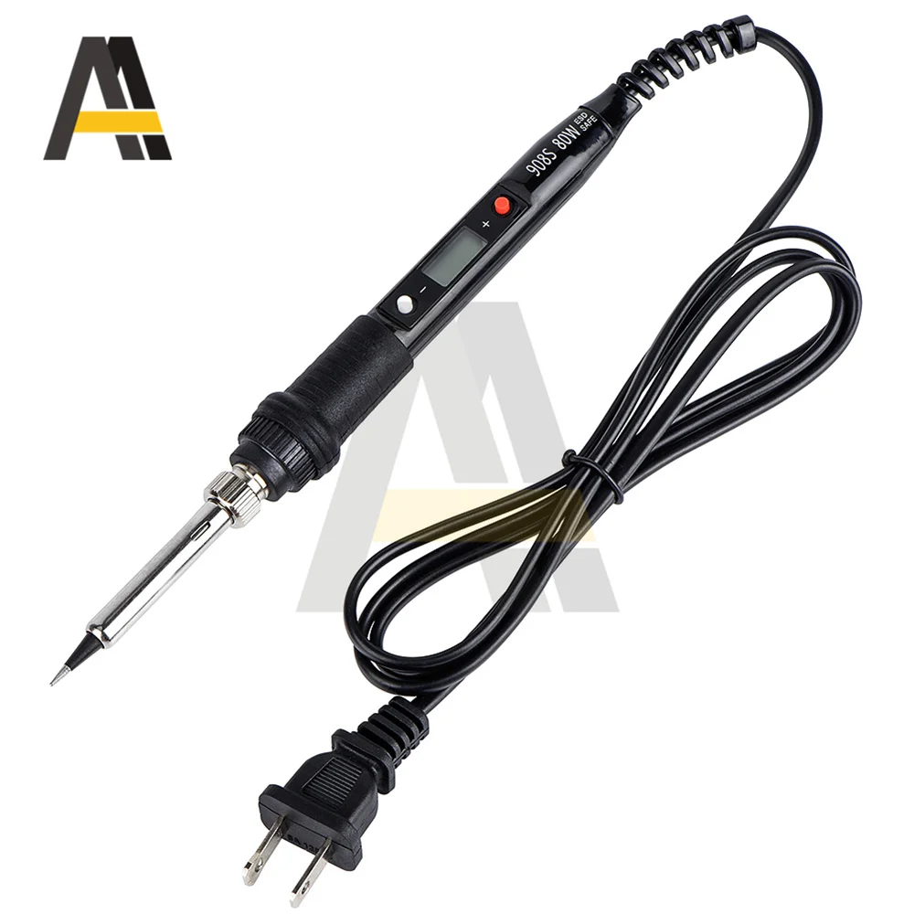 Электрический паяльник с ЖК-дисплеем, 80 Вт, 908S, припой с регулируемой температурой, 110 В/220 В, паяльник с наконечниками с вилкой ЕС/США