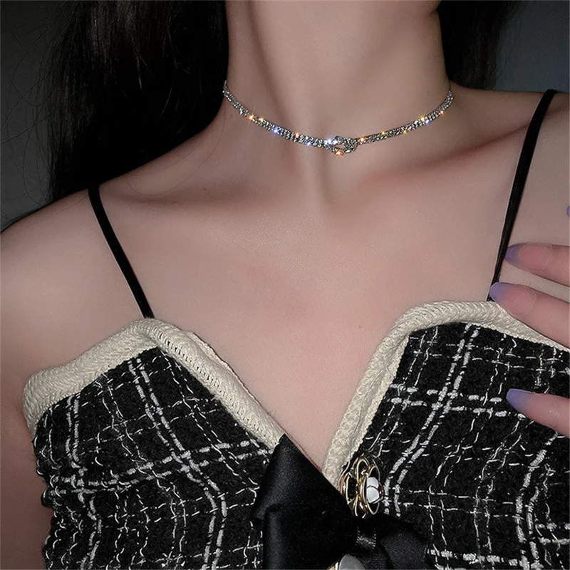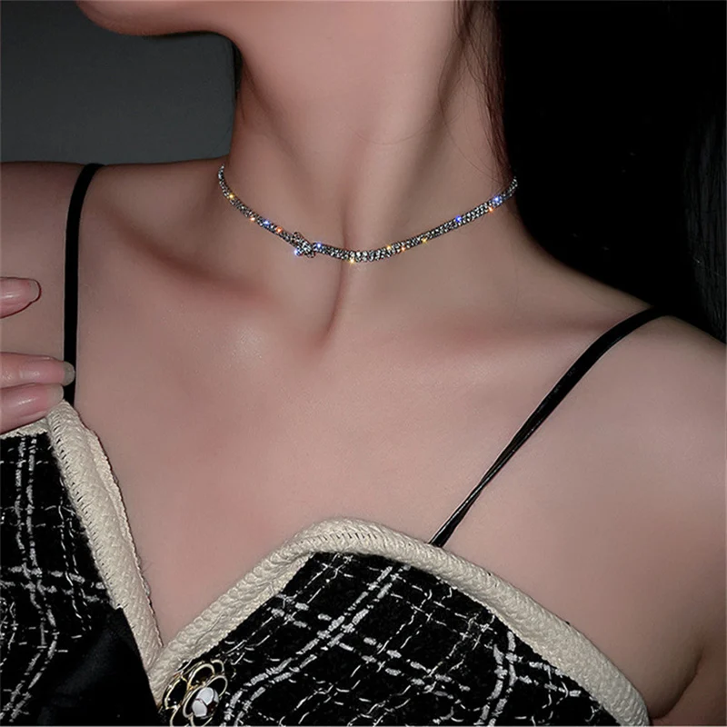 FYUAN Простой Полный Стразы колье для Для женщин геометрический узел ключицы ожерелья цепи ювелирные изделия, ювелирные изделия
