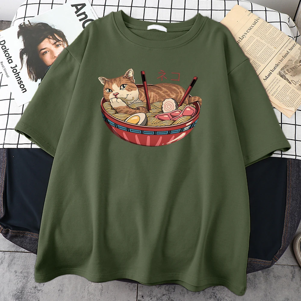 Футболки в виде кошки и лапши, мужские футболки высокого качества Caeroon, футболка с принтом голубого дракона, свободные футболки большого размера для макияжа