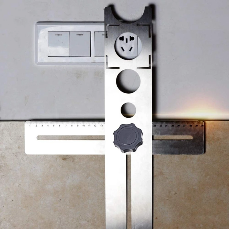 Многофункциональная Линейка-локатор для отверстий в керамической плитке из нержавеющей стали, регулируемая линейка на 360 градусов, ручные инструменты для измерения отверстий