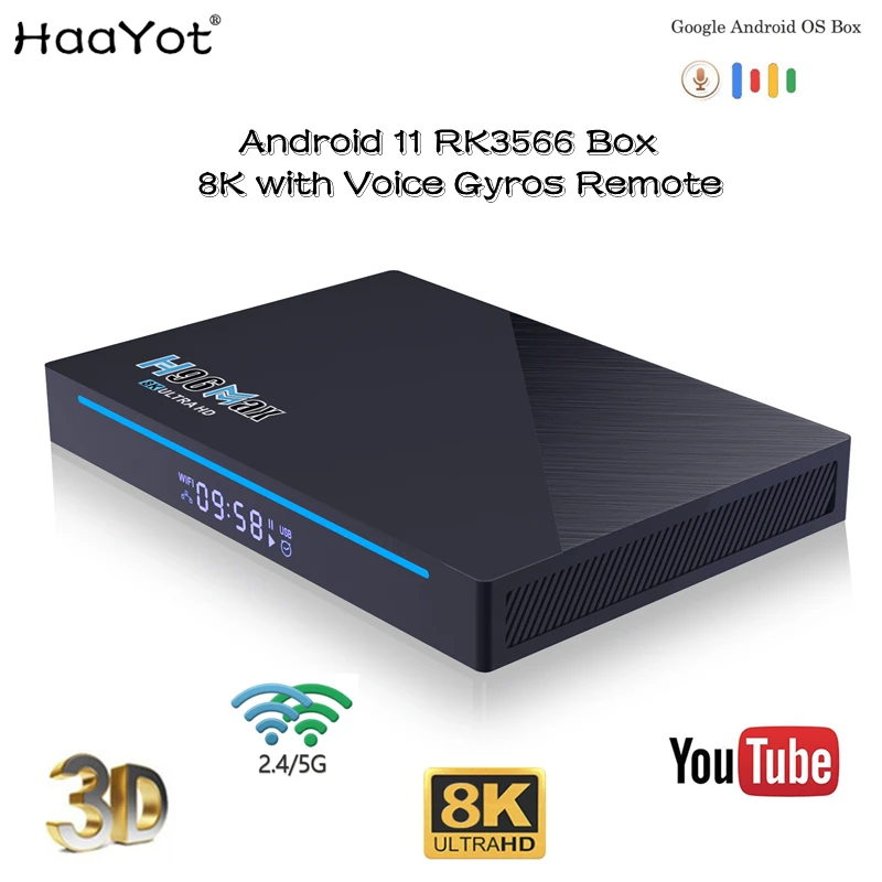 Новый Android 11 Smart TV Box Rk3566 8K Ultra HD Google Voice Play Netflix BT 4,2 Gyros Remote 8 Гб Ram Set Top Box медиаплеер