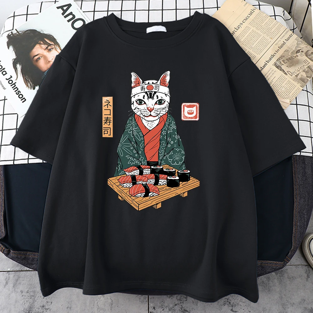 Крутые Японские Женские футболки с принтом кошки Shinobi, дышащая л...