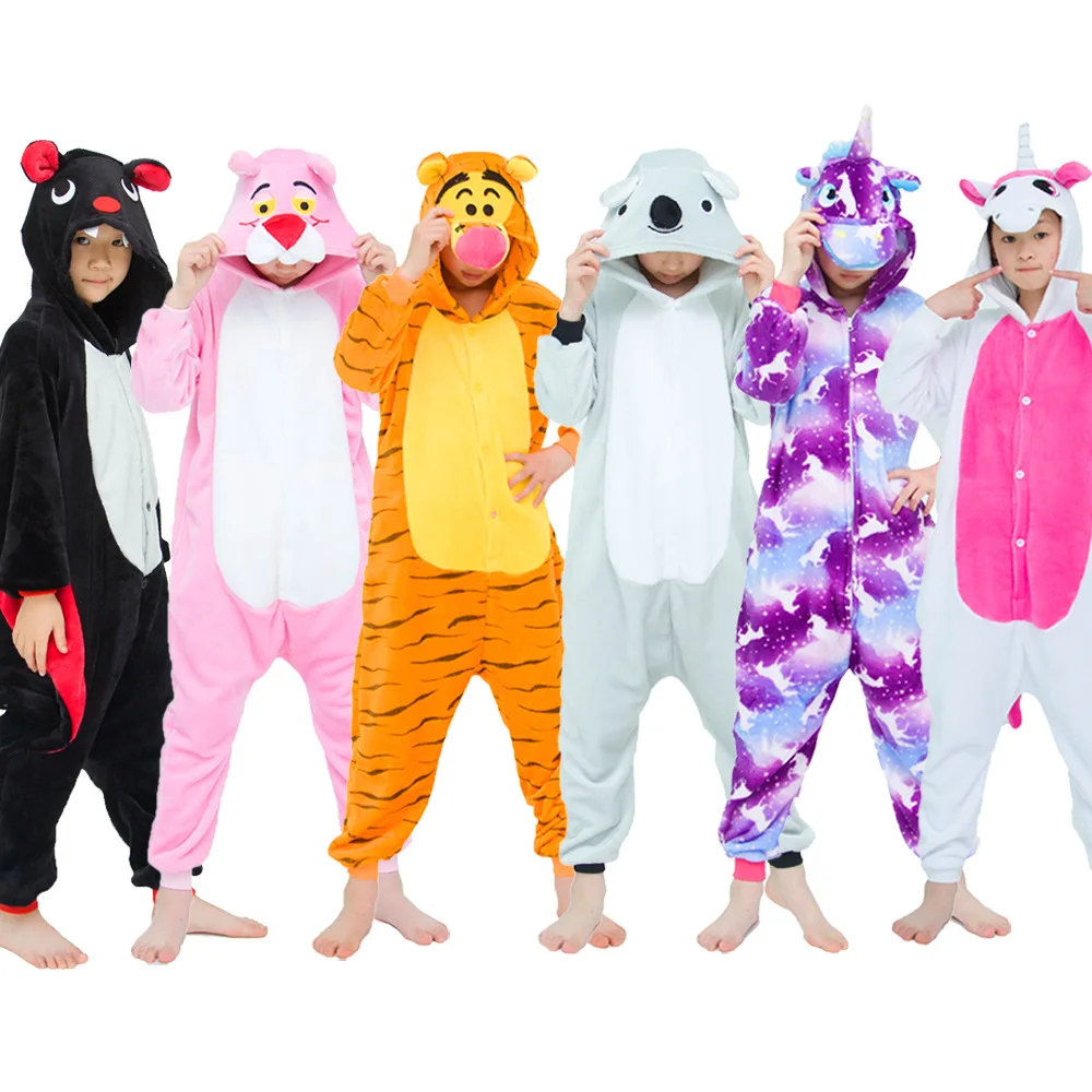 Осенне-зимняя Фланелевая пижама в виде единорога, детские комбинезоны с капюшоном в виде животных, Мультяшные пижамы для мальчиков, пижамы в виде панды для девочек, детская пижама