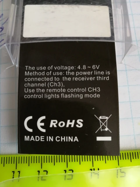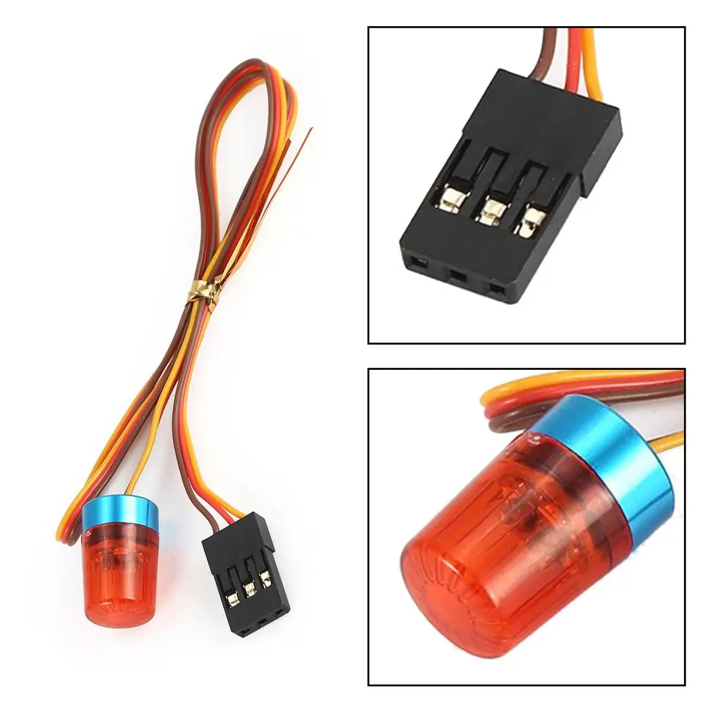 Тот свет, который я получил, является простым поворотным красным светом (без вспышки, без стробоскопа, как описано). Он работает от 4,8 В до 6,0 В, затем может быть подключен непосредственно к приемнику. Доставка 1 месяц в Канаду.