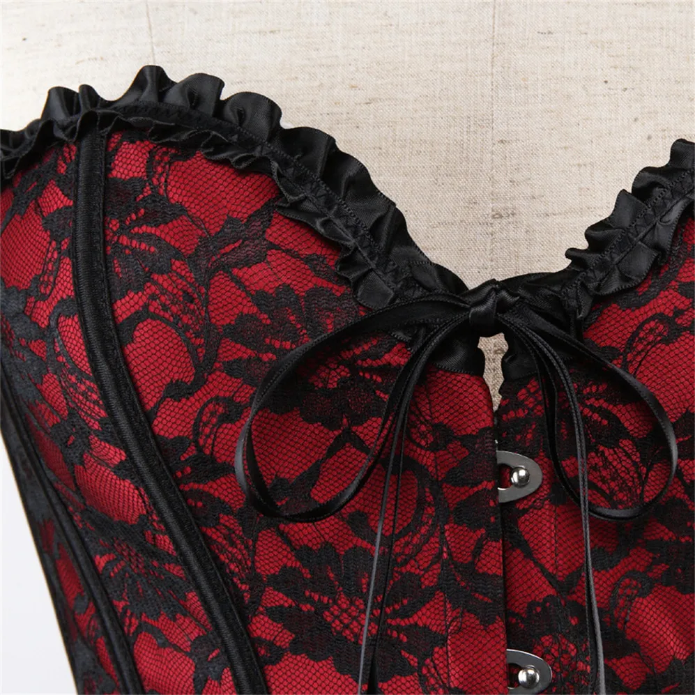 Корсеты и бюстье Топ сексуальное Для женщин Бурлеск белье отделкой на шнуровке с костей корсет Overbust костей Бюстье размера плюс красные, синие корсеты и бюстье