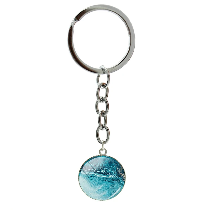 Брелок для ключей мужской с изображением волны воды, модный круглый...