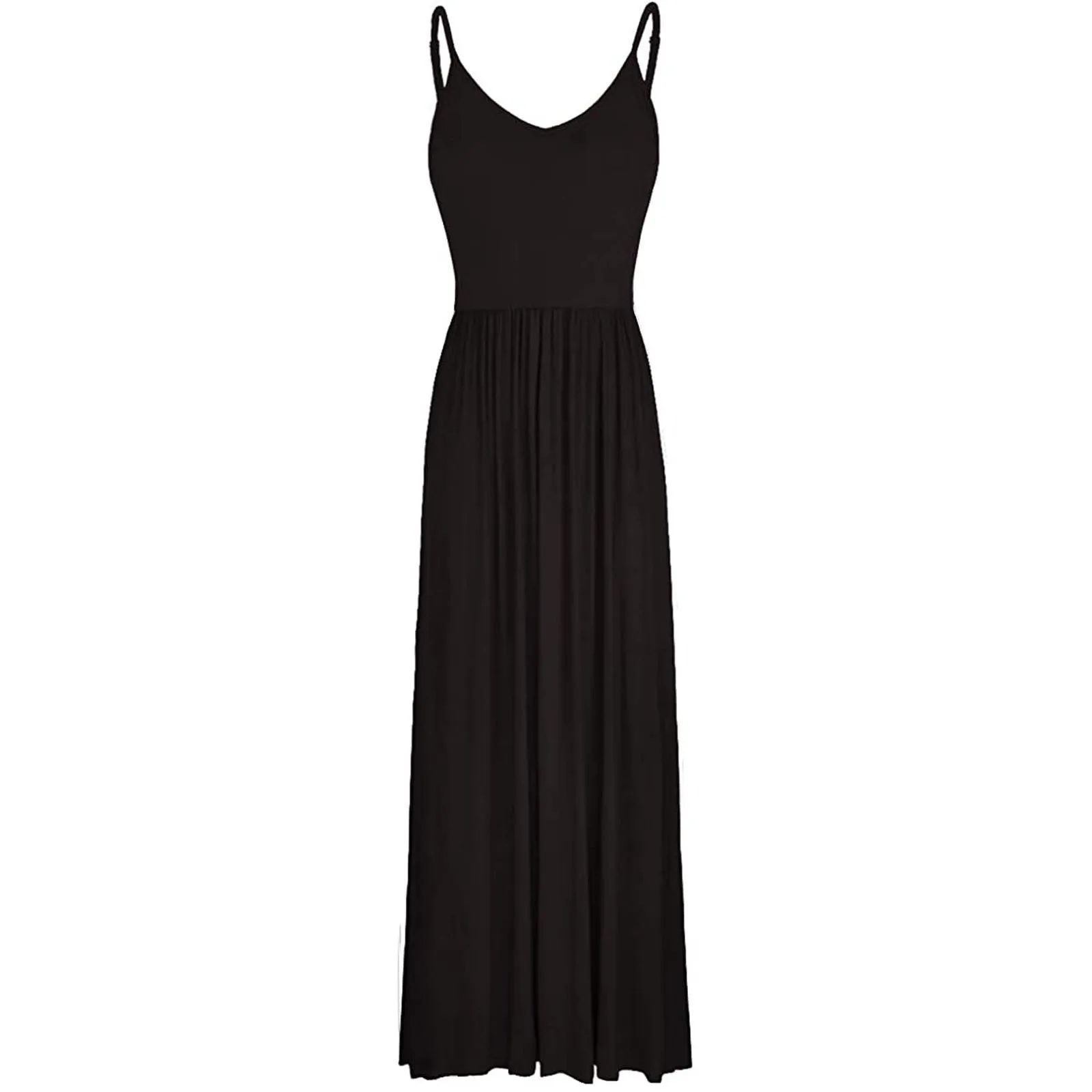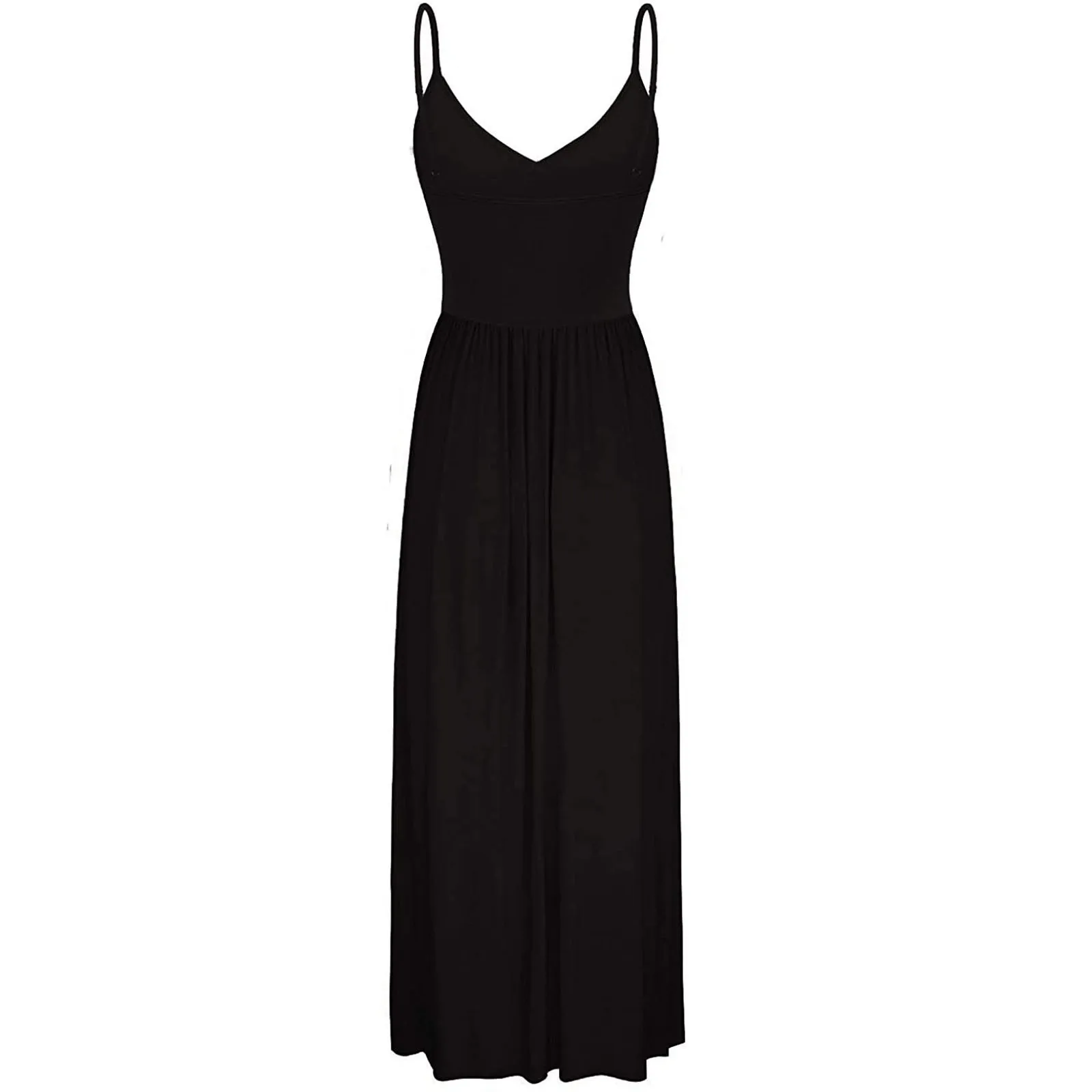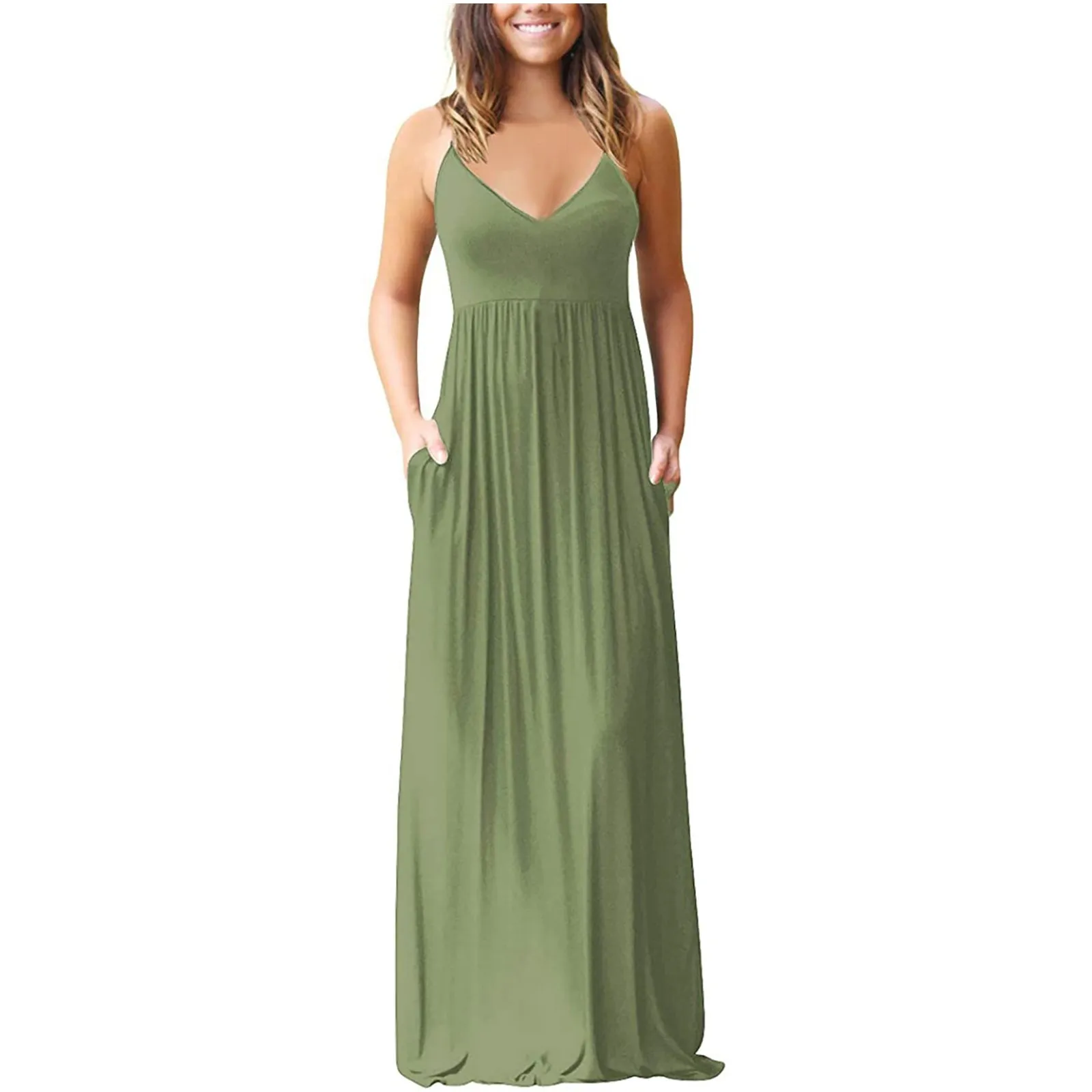 Женское платье макси без рукавов с v-образным вырезом и карманами