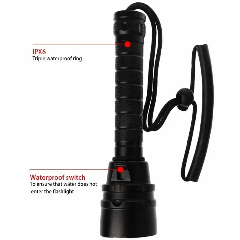 Подводный фонарь T6 для дайвинга, D2, с глубиной до 100 м