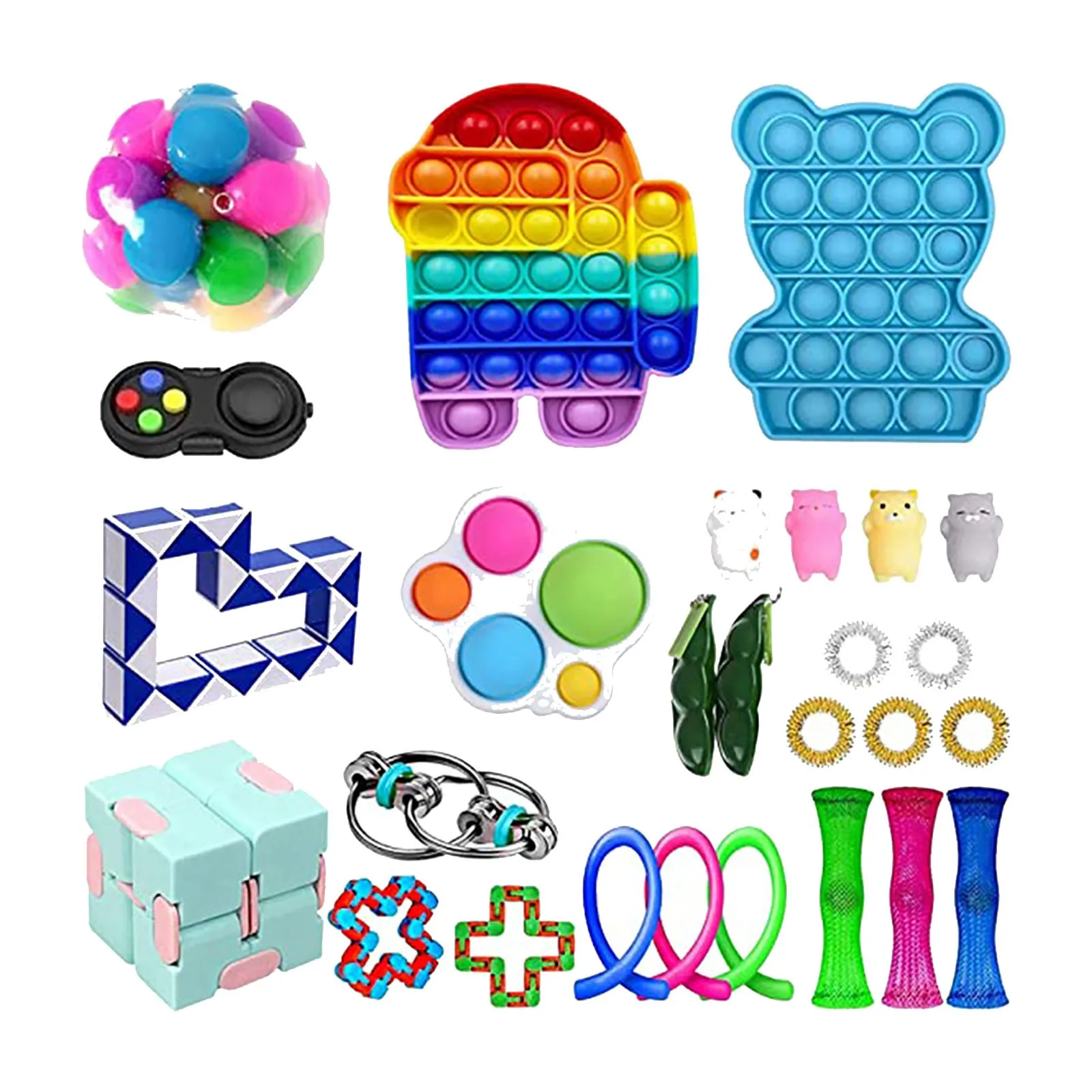 Набор сенсорных игрушек Fidget, 22 Упаковка, снятие стресса и антитревожные инструменты для детей Сенсорная Непоседа упаковка игрушек, дешевые игрушки для снятия стресса с тройной головкой Ямочка, пуш-поп Пузырьковые игрушки для снятия стресса ручные игрушки для детей и взрослых
