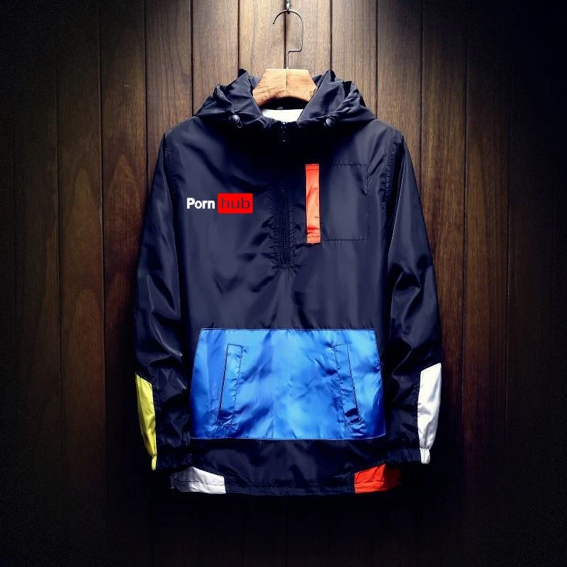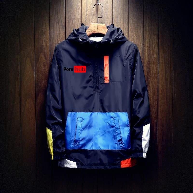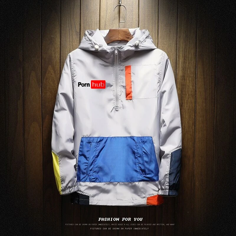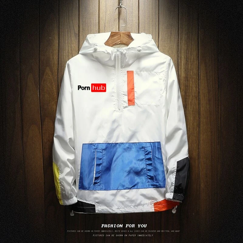 Новинка весна-осень 2021, мужская куртка Pornhub, повседневная куртка-бомбер с капюшоном, модная Лоскутная ветровка, мужская куртка