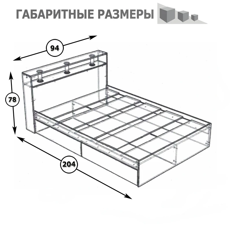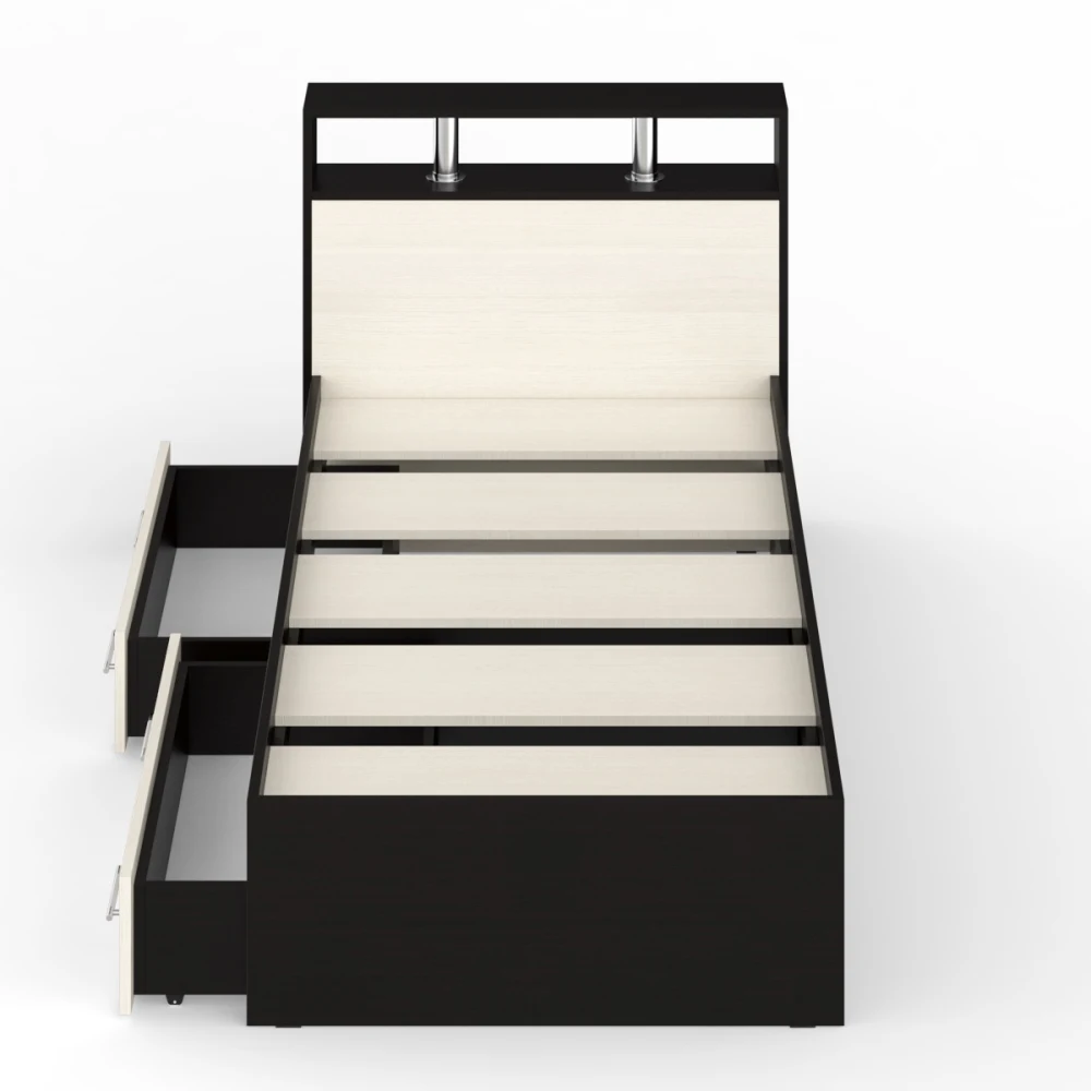 В основании кровати расположены два вместительных ящика для хранения постельных принадлежностей и личных вещей.