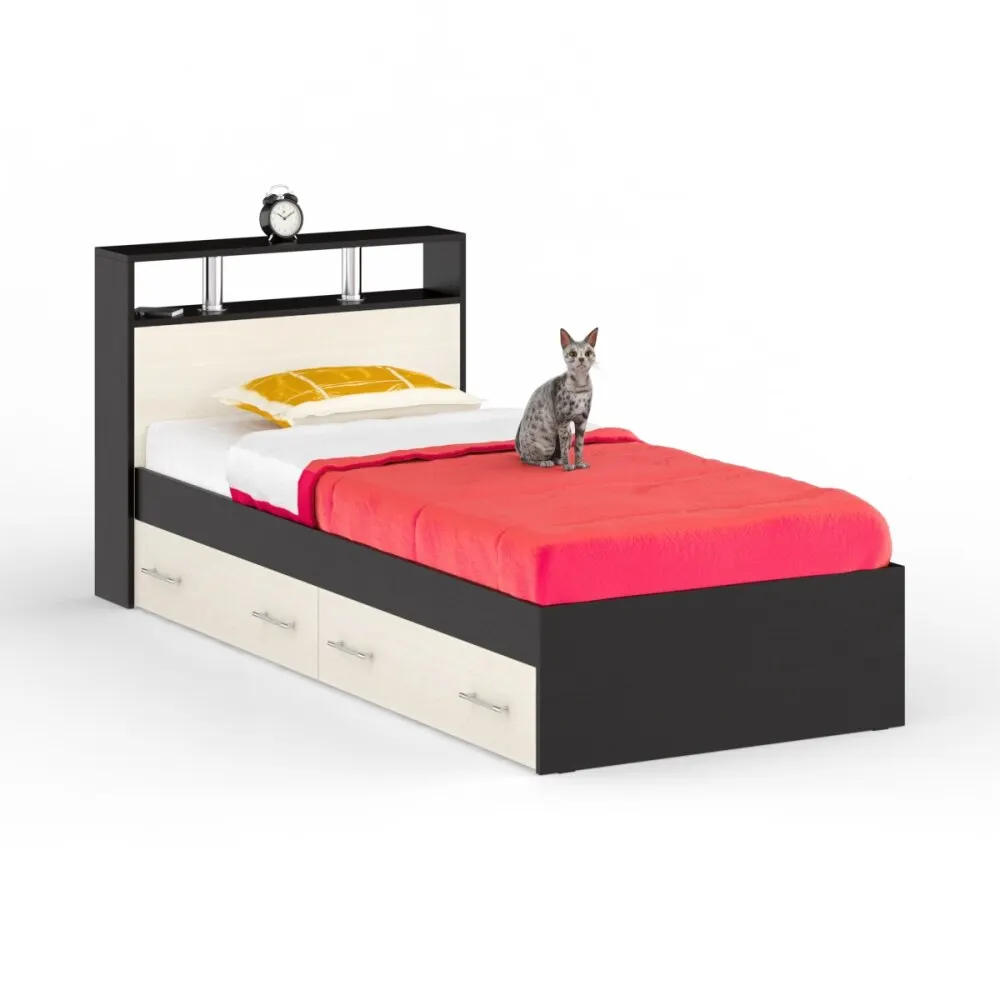 Наименование изделия: Кровать с ящиками 900Модель кровати: Камелия Артикул товара: #1022143Материал кровати: ламинированная ДСП, кромка ПВХ, хромированная труба 25Описание кровати 900 с ящиками спальни Камелия: