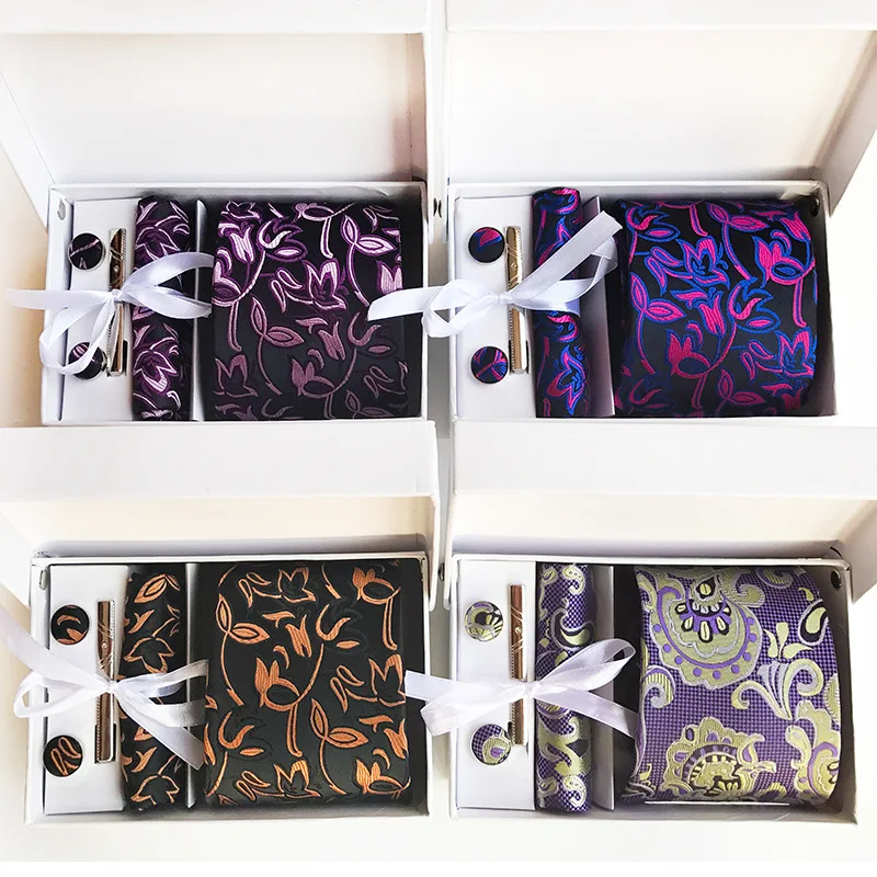 Новый Цветочный Галстук Пейсли для мужчин галстук для шеи, карманные квадраты, запонки, зажимы для галстука наборы Шелковый мужской галстук 8 см свадебные аксессуары A014