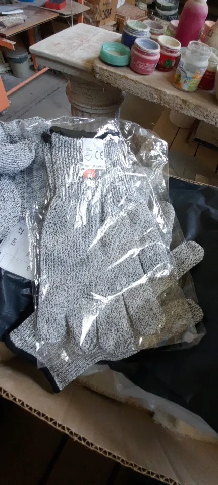 доставка очень быстрая! упаковано в обычный полиэтиленовый пакет, перчатки соответствуют описанию. заказала размер L, соответствует размеру. на защиту от порезов не проверчла, но на вид они действительно намного прочнее обычных строительных...очень плотная вязка и нить- такая синтетика - синтетика, даже немного скользит.
