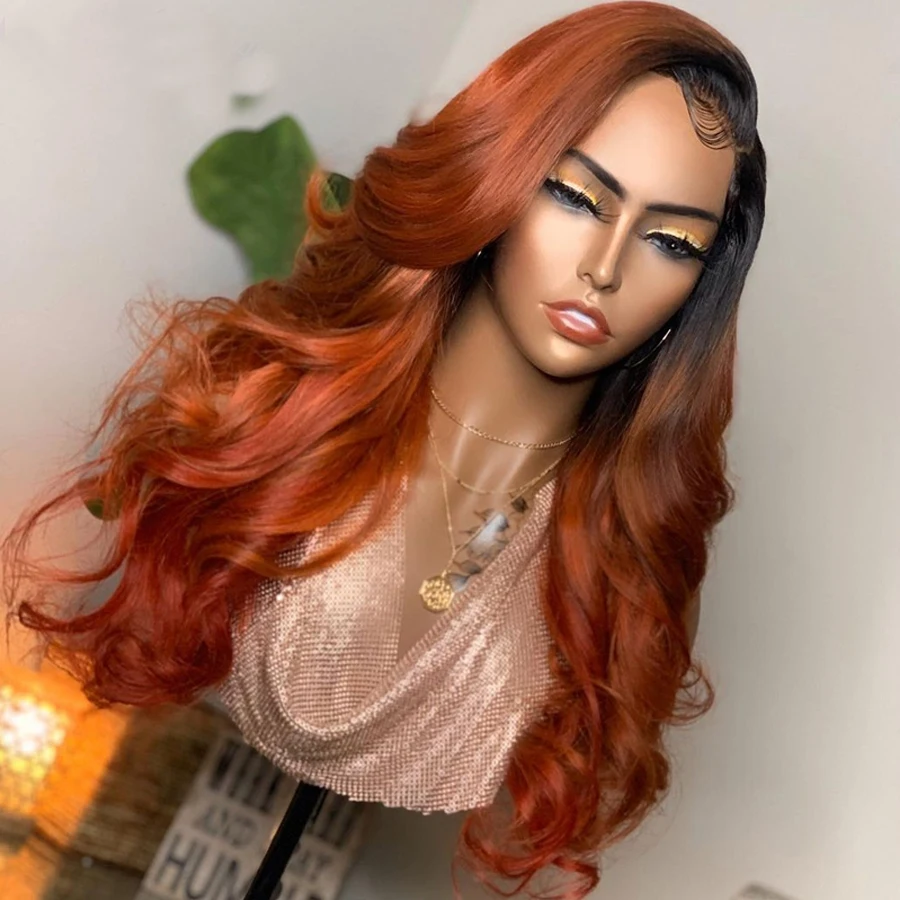 Парик из синтетических волос 13x4, парик с волнистыми кружевами спереди, прозрачные парики на сетке для женщин, волосы из волокна, предварительно выщипанный парик с эффектом омбре, оранжевый, 250%