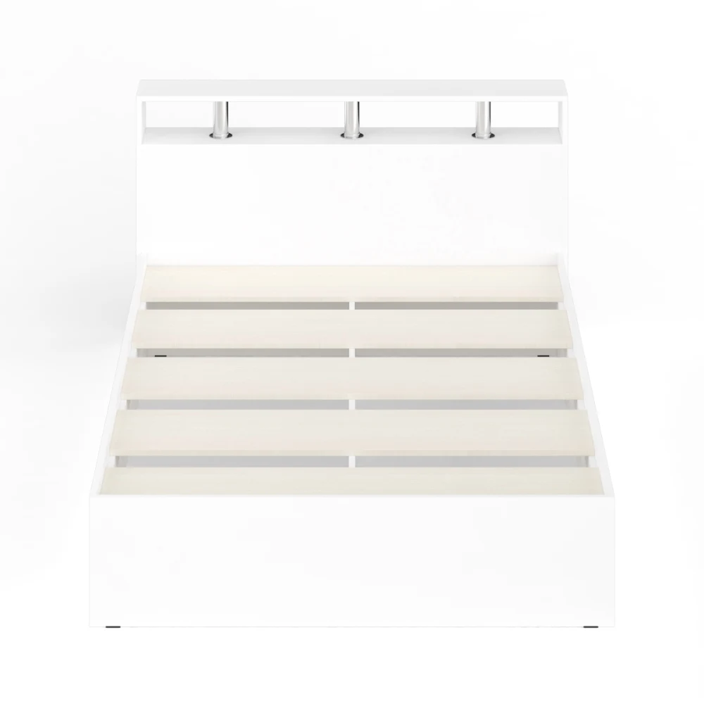 Кровати уже оборудованы надежным основанием под матрас, а комплект тумб, согласно законам эргономики, включает правую и левую модель.