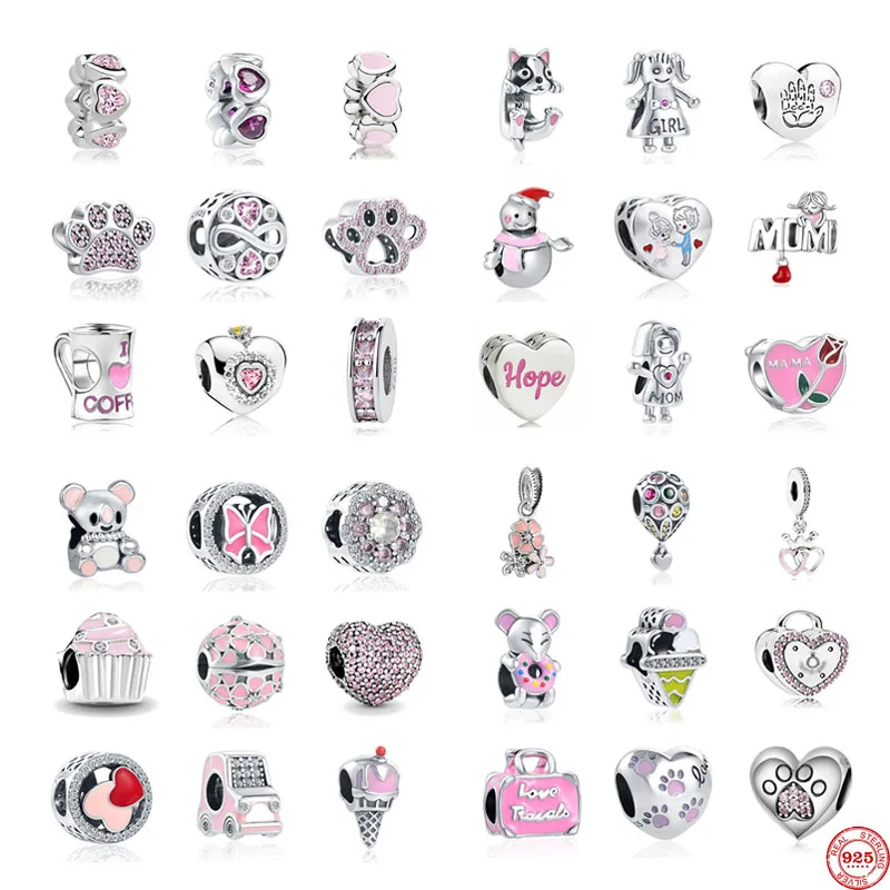 Новейшая модель; В европейском стиле; Цвет розовый проложить эмаль Spacer рисунком собачьей лапы медведя любовь Diy бусины, подходят к оригиналу, соответственные Европейской Пандоре обаятельные Серебро 925 браслет Для женщин C098