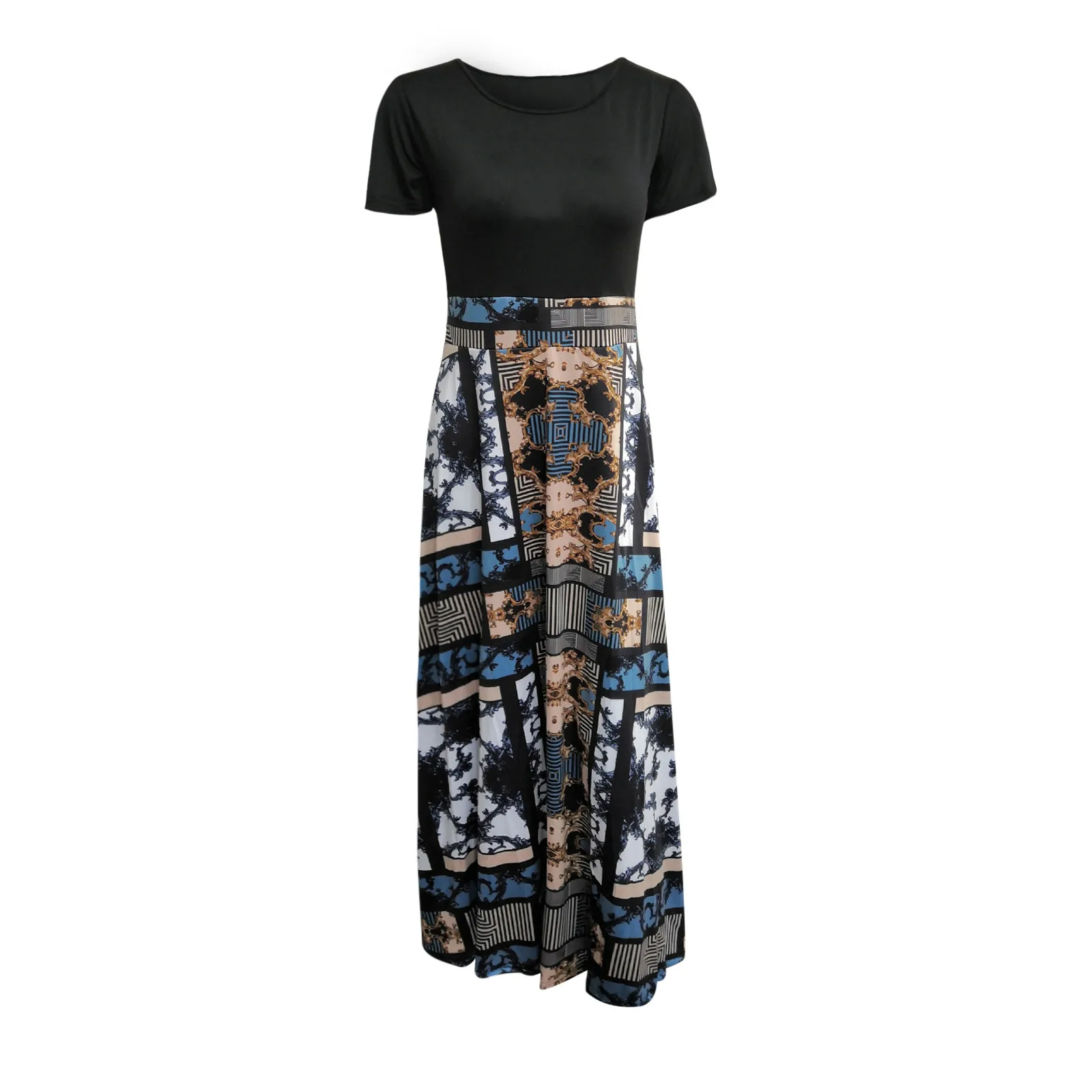 Женское длинное платье макси, с цветочным принтом, с коротким рукавом
