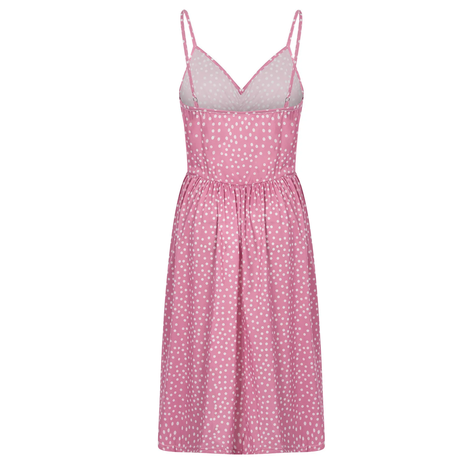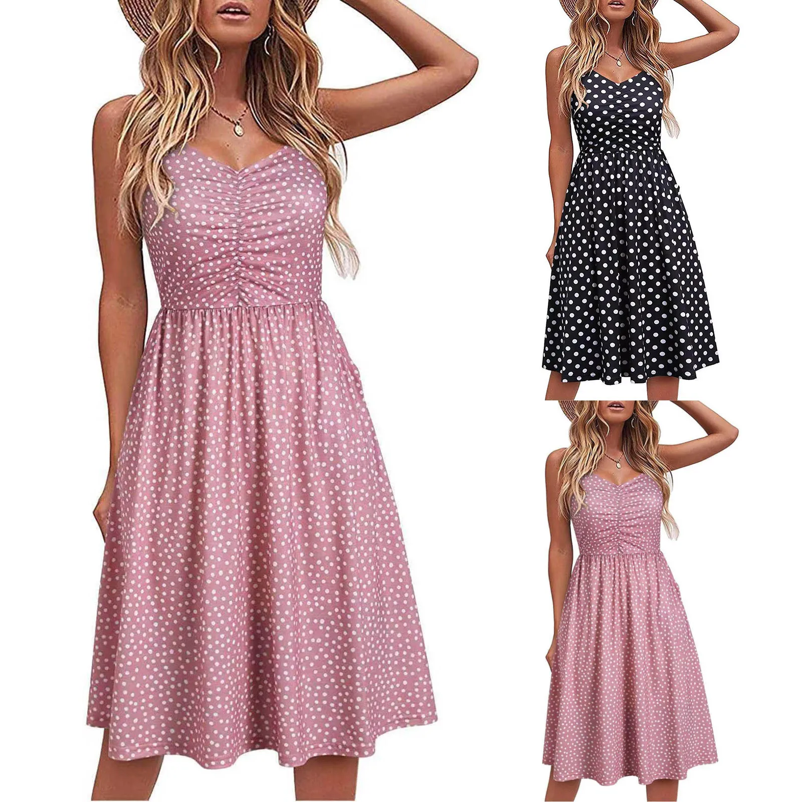 Женское платье в горошек, с V-образным вырезом, на тонких бретельках