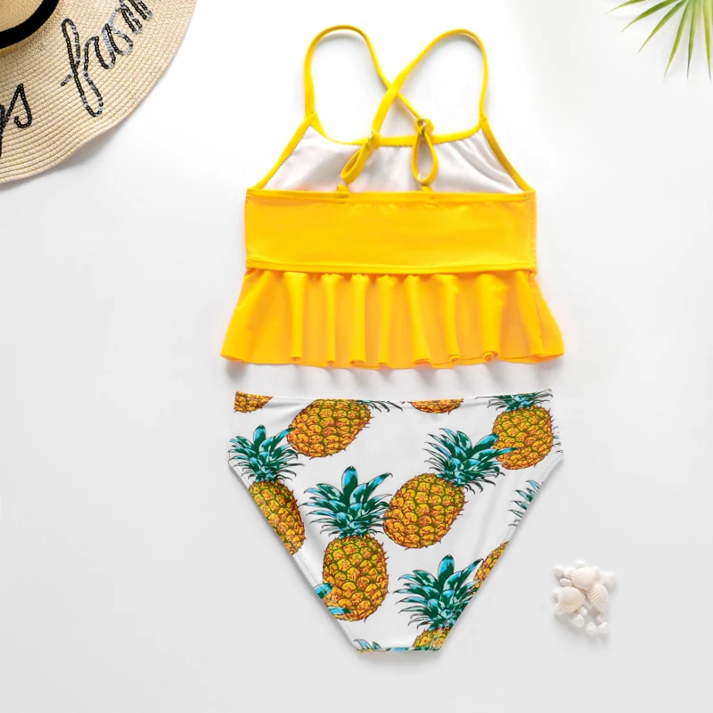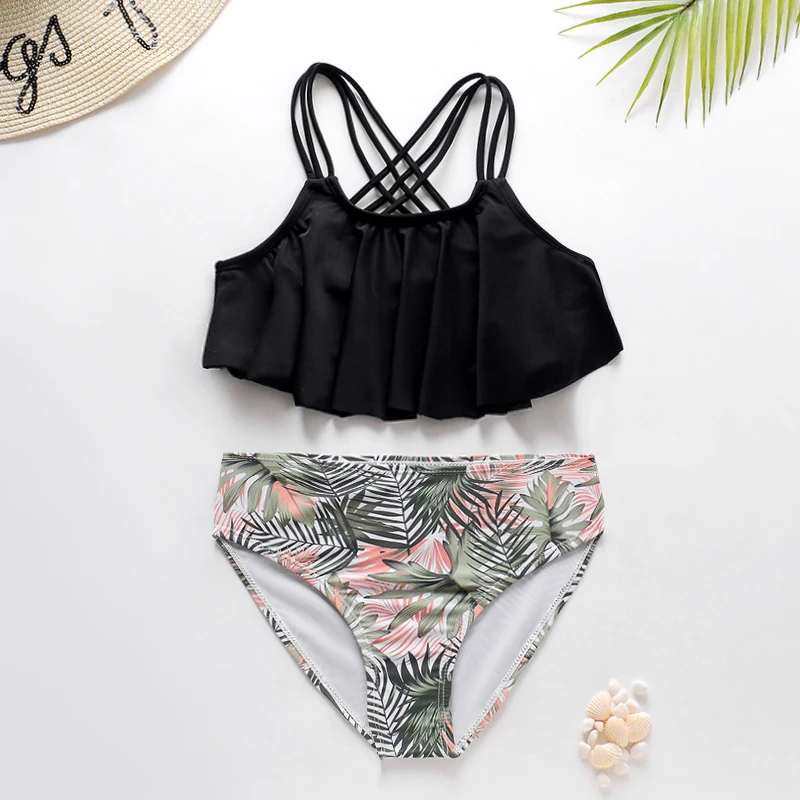 Купальник для девочек 2-16 лет, комплект из двух предметов, детский купальник с косыми плечами и оборками, купальный костюм в полоску, пляжная одежда, 2021