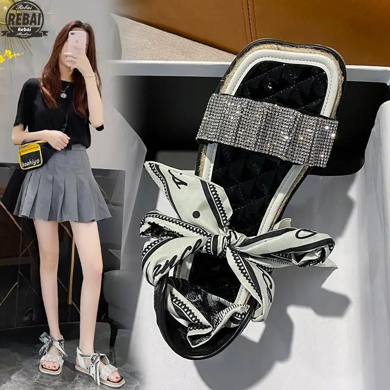 Женские блестящие туфли, женские летние сандалии с бантом 2020, шле...