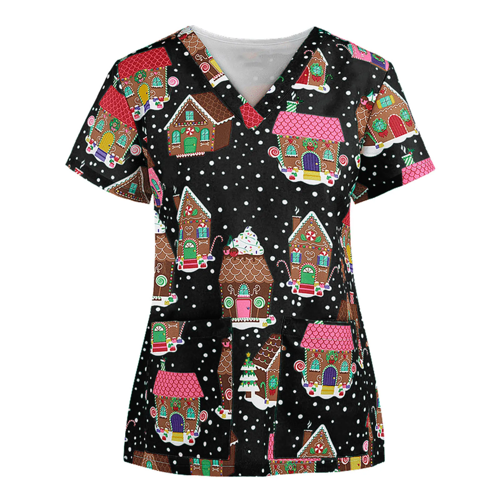 Женские топы с V-образным вырезом, Рождественская Униформа с принтом и коротким рукавом, топы для медсестер, скрабы, топы для женщин, Медицинская туника, блузка fermera