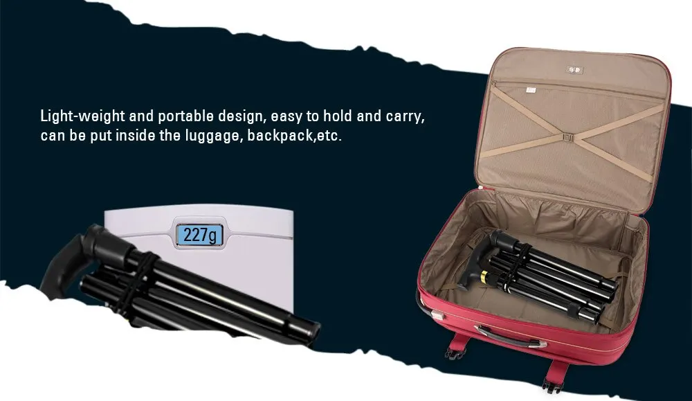 Посылка Вес: 0,291 кгПосылка: 33,00x18,00x7,00 см/12,99x7,09x2,76 дюймовПосылка: 1 х складной трость