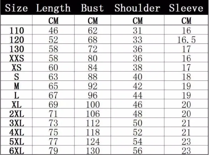 S / M / L /XL / 2XL / 3XL/ 4XL/ 5XL/ 6XL