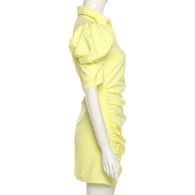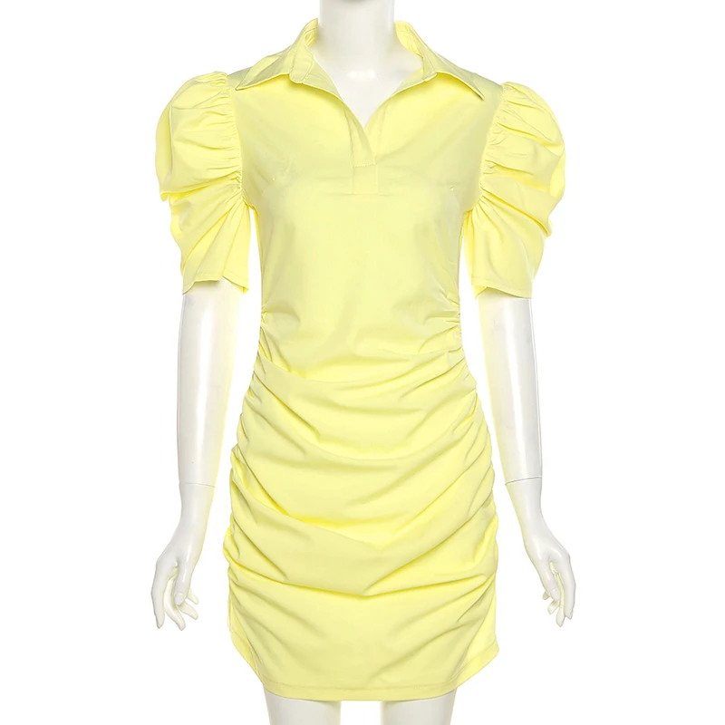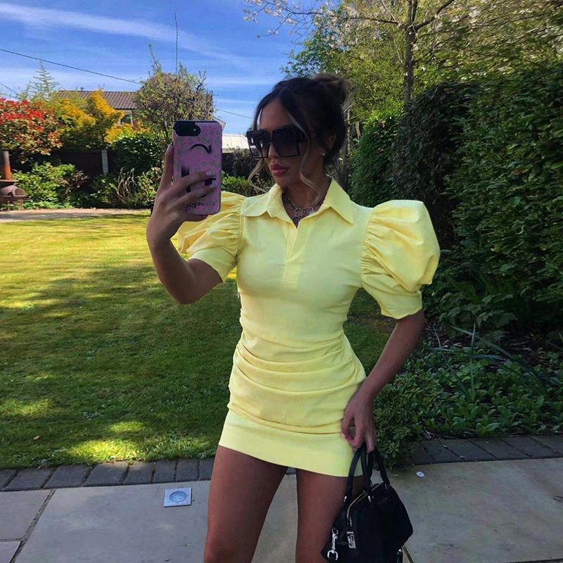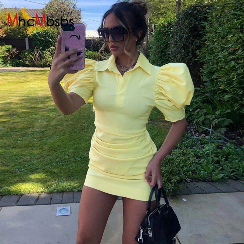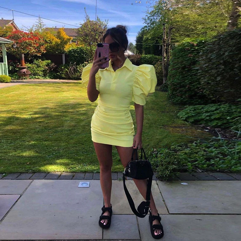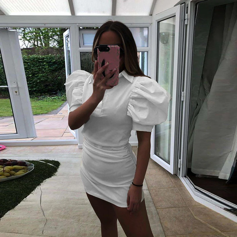 Женское винтажное мини-платье с пышными короткими рукавами, элегантное облегающее платье-рубашка с воротником с рюшами и отложным воротником, летняя одежда Феи 2021
