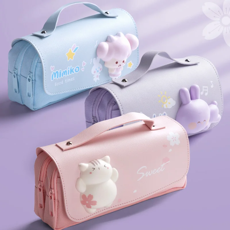 Милый чехол для ручки из искусственной кожи с отделением для школьниц