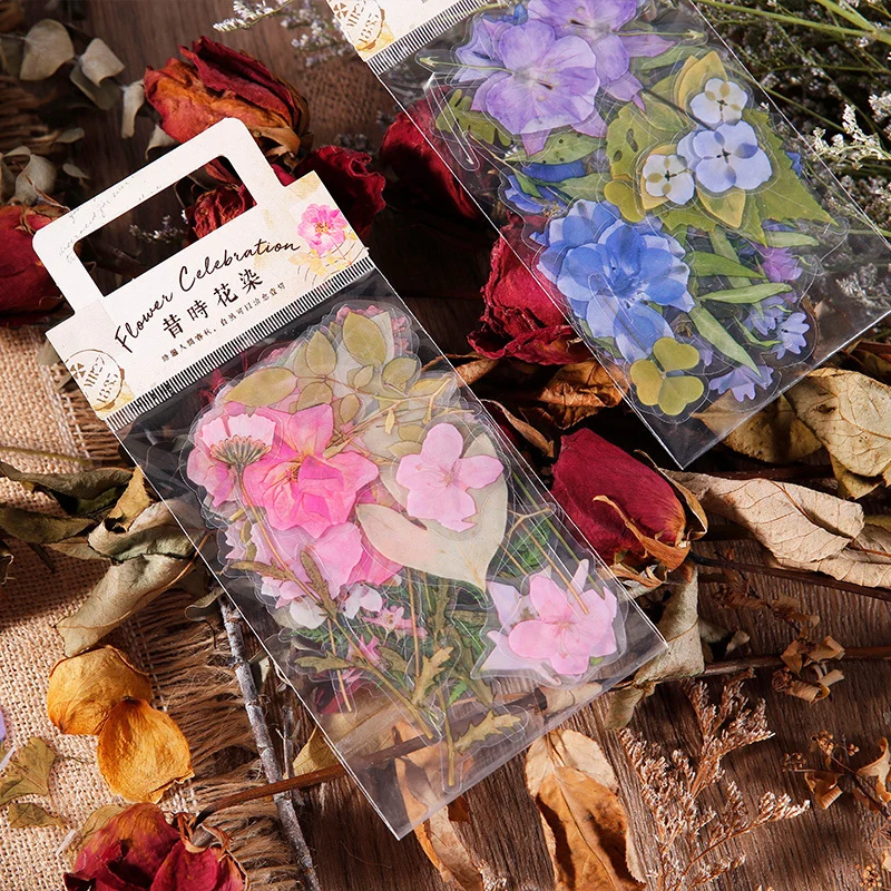 40 шт.упак. наклейки с дикими цветами, прозрачные дневник в стиле С...