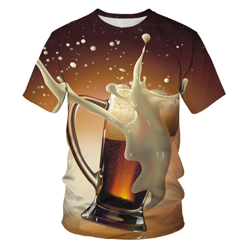 Мужская летняя футболка с коротким рукавом и 3D-принтом пива, Мужская футболка с круглым вырезом, мужская и женская спортивная футболка, повседневные топы, 2021