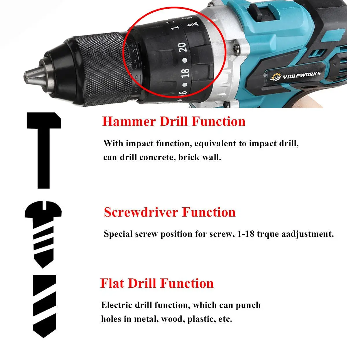Дрель-шуруповерт ударная, 3 в 1, 20 + 3 в, литий-ионный аккумулятор