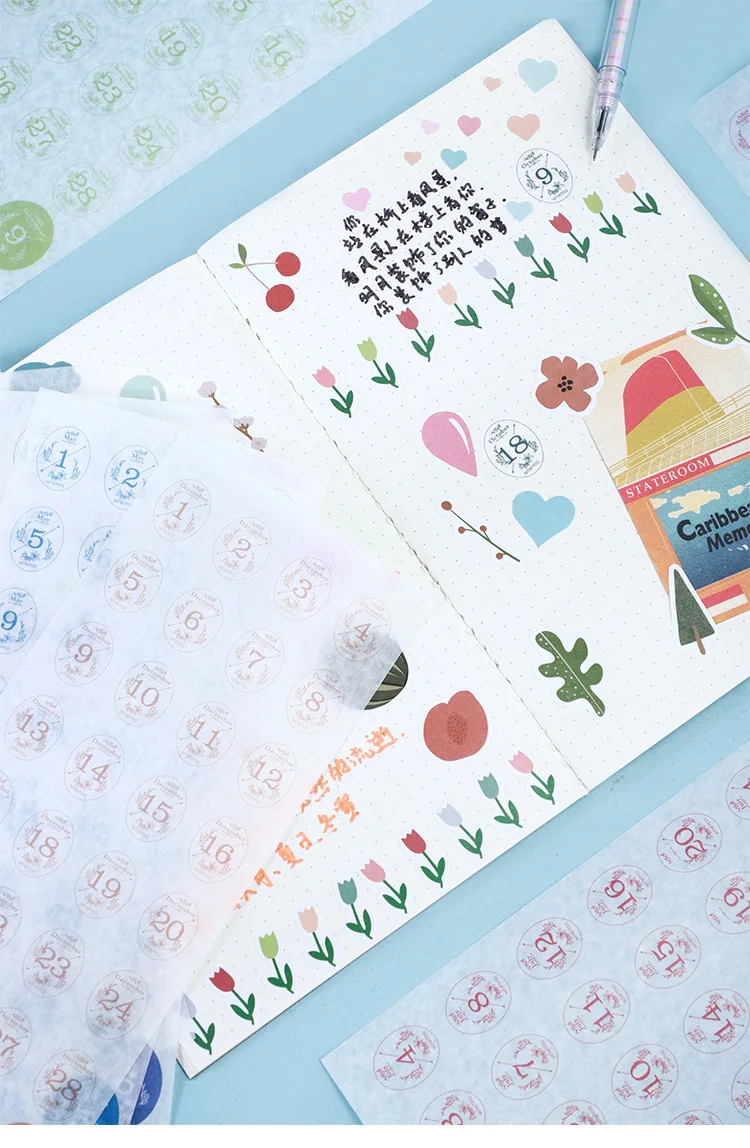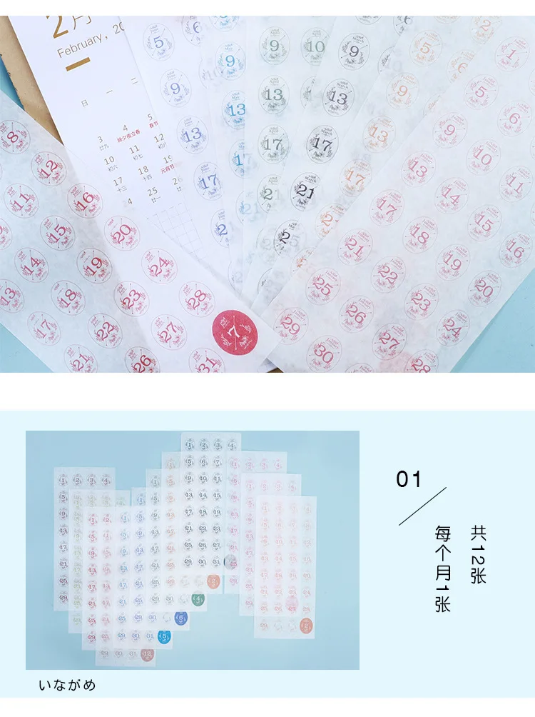 Набор наклеек Kawaii для ежедневника на 365 дней, календарь на 12 месяцев, дневник в стиле Скрапбукинг, материалы для украшения, Канцтовары