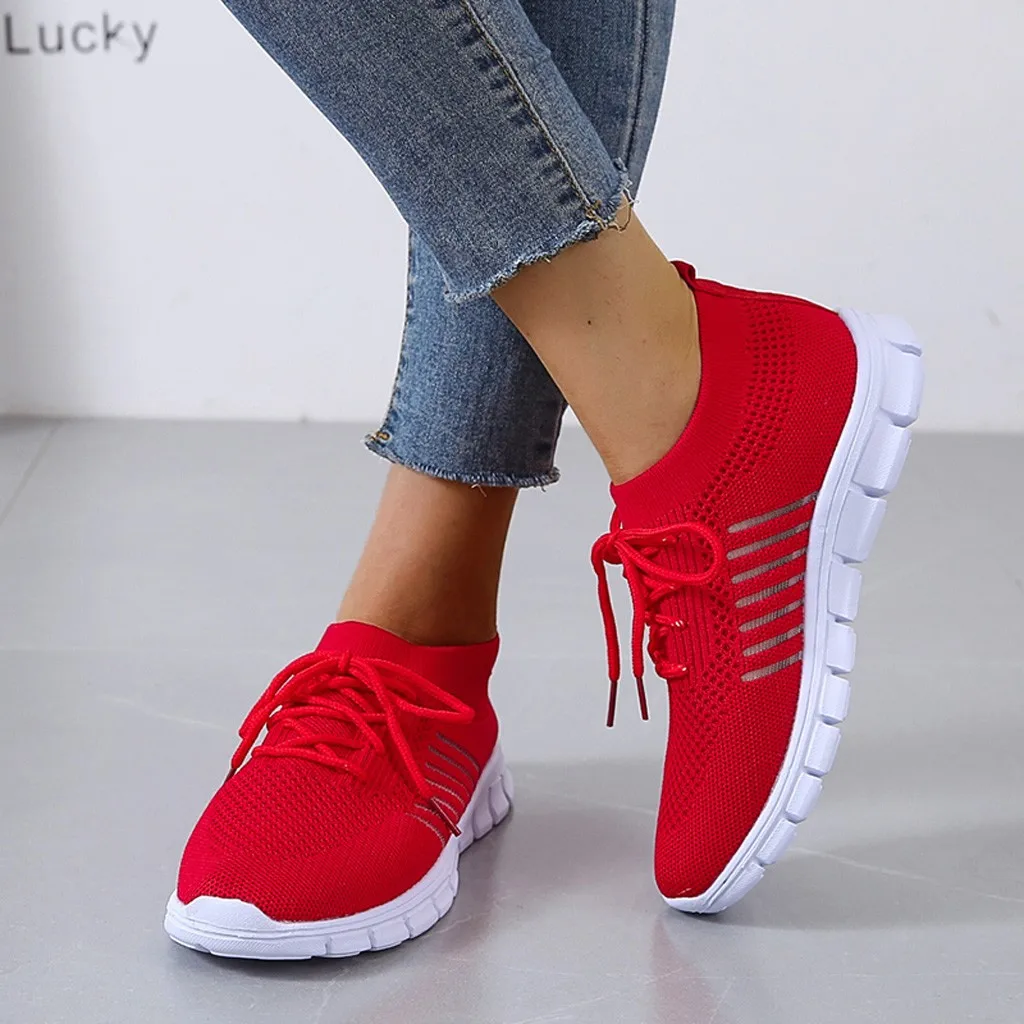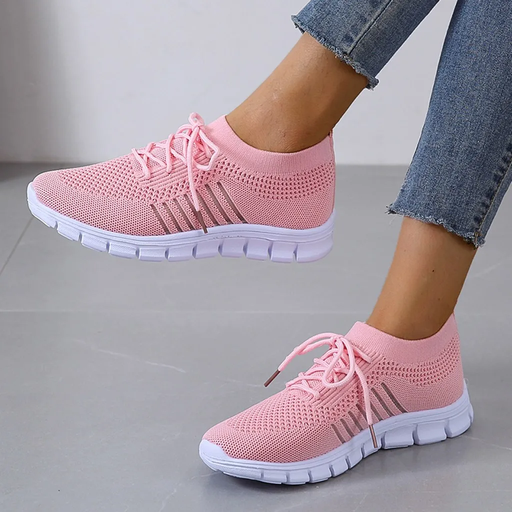 Кроссовки женские вязаные без шнуровки, плоская Вулканизированная подошва, сетчатые, Повседневная прогулочная обувь