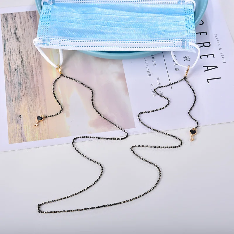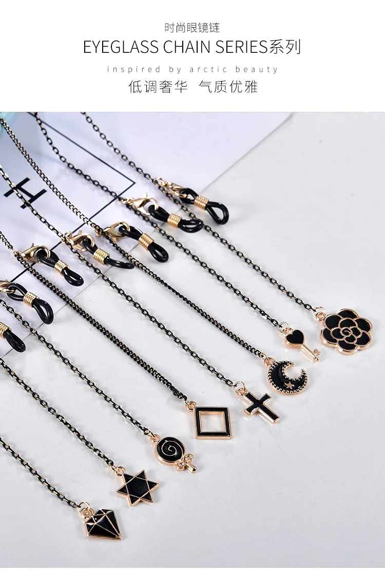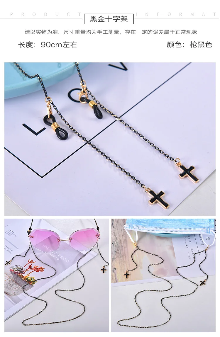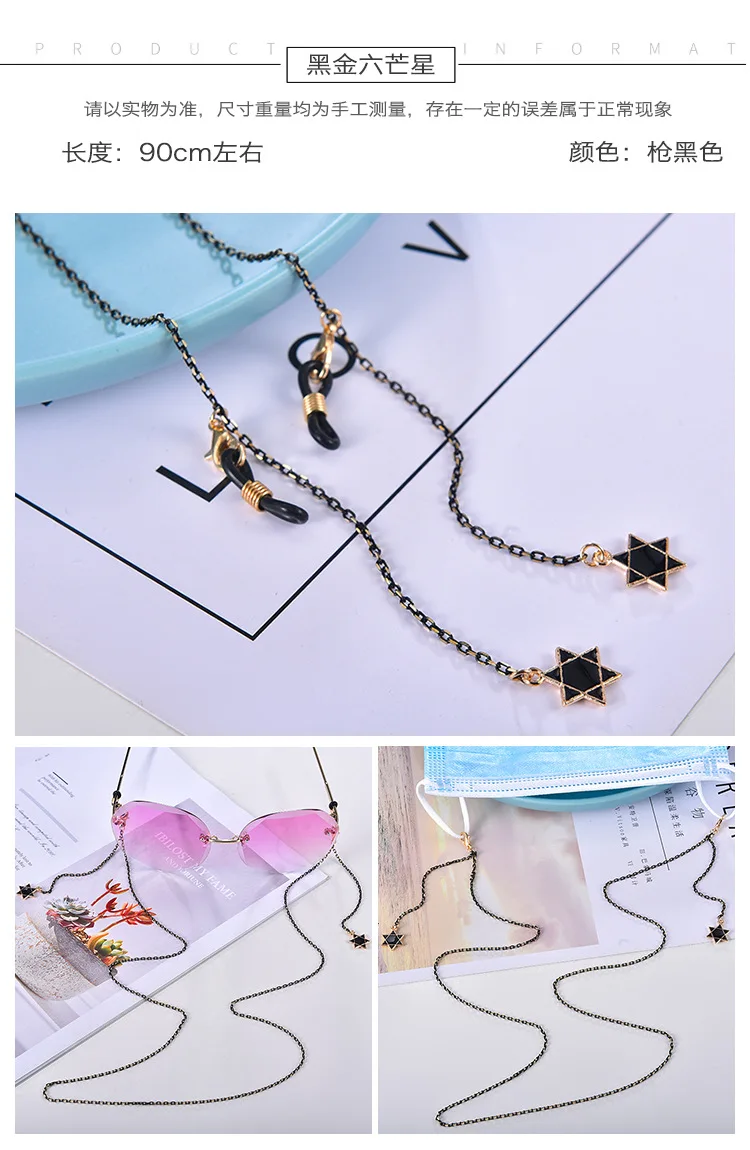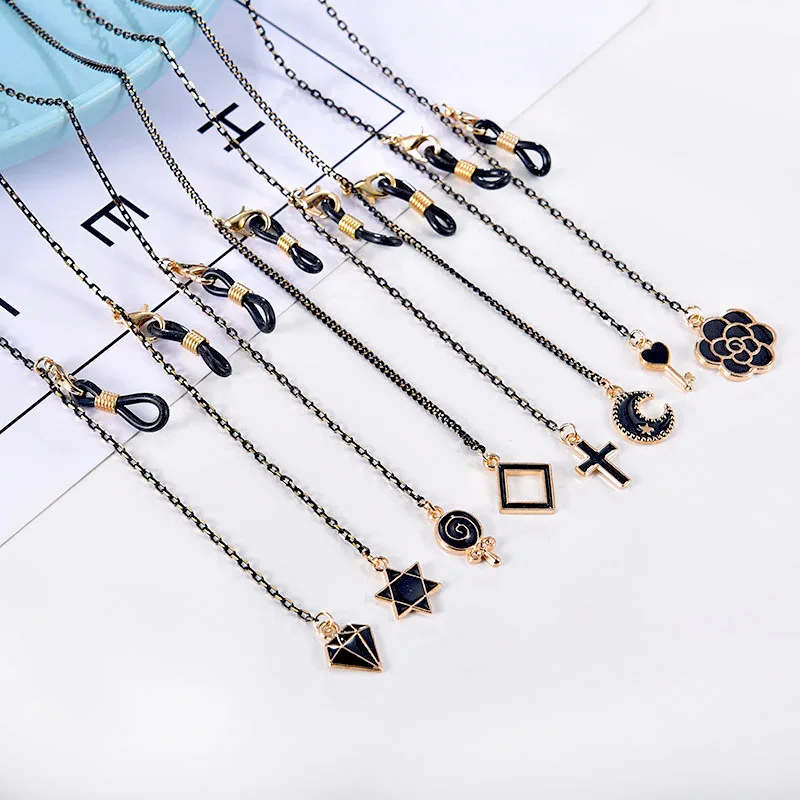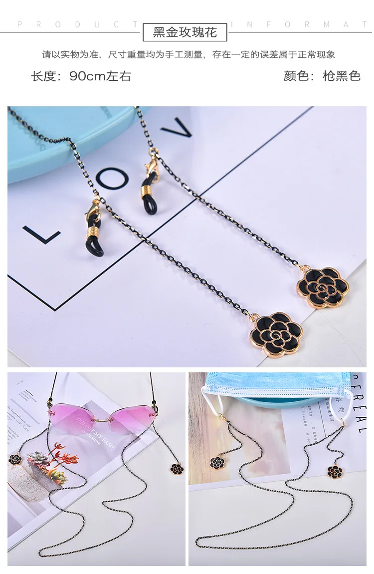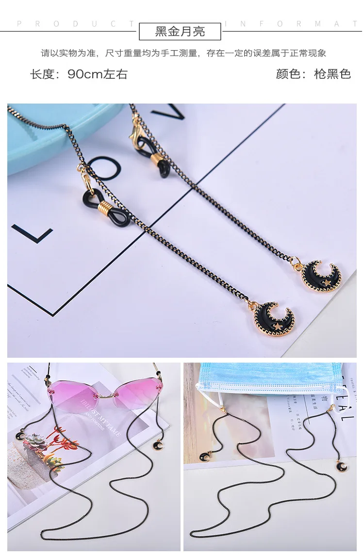 Модная черная цепочка для маски, цепочки для очков для женщин и девушек, ремешки на шею, веревка для защиты от потери, крутая простая подвеска в виде цветка и Луны