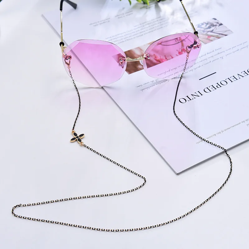 Цепочка для очков Женская, металлическая, нескользящая, черного цвета