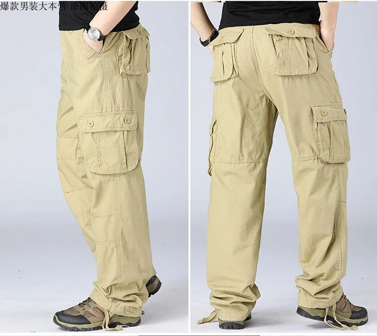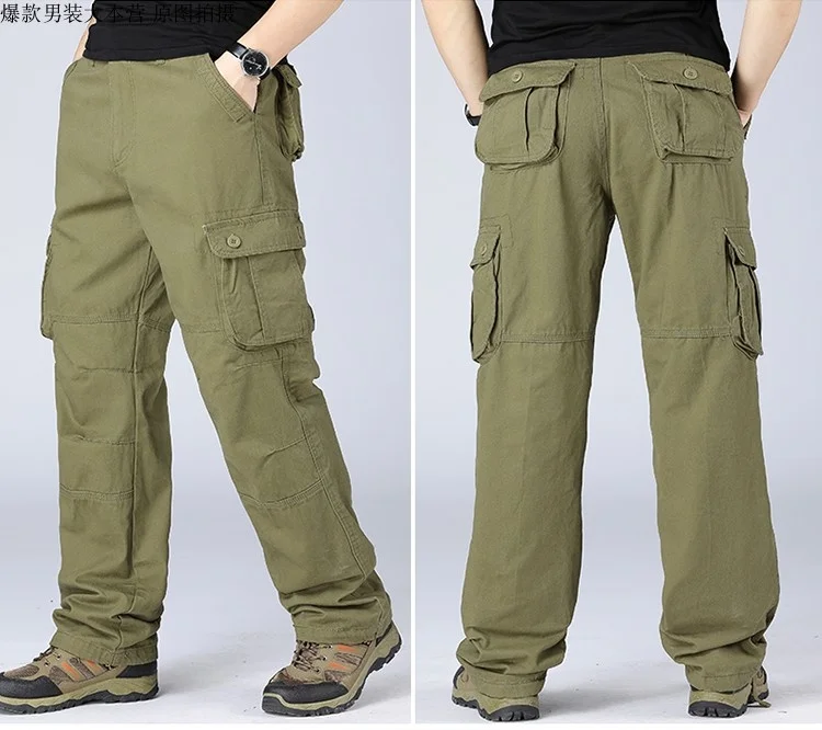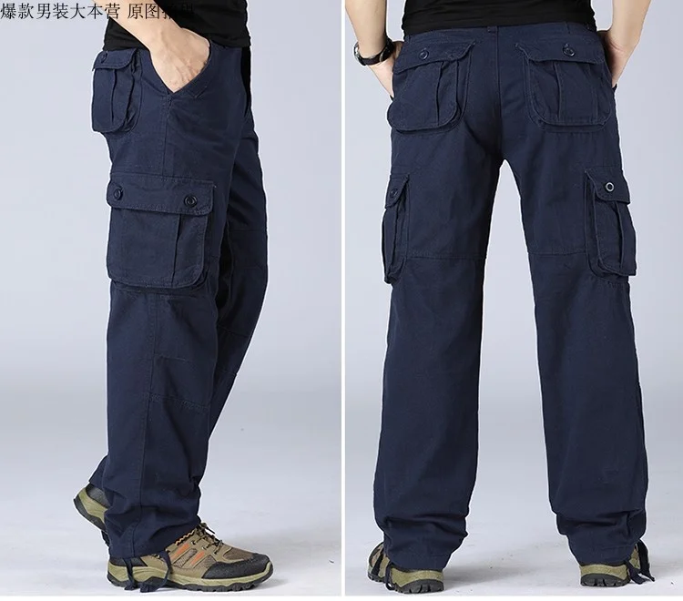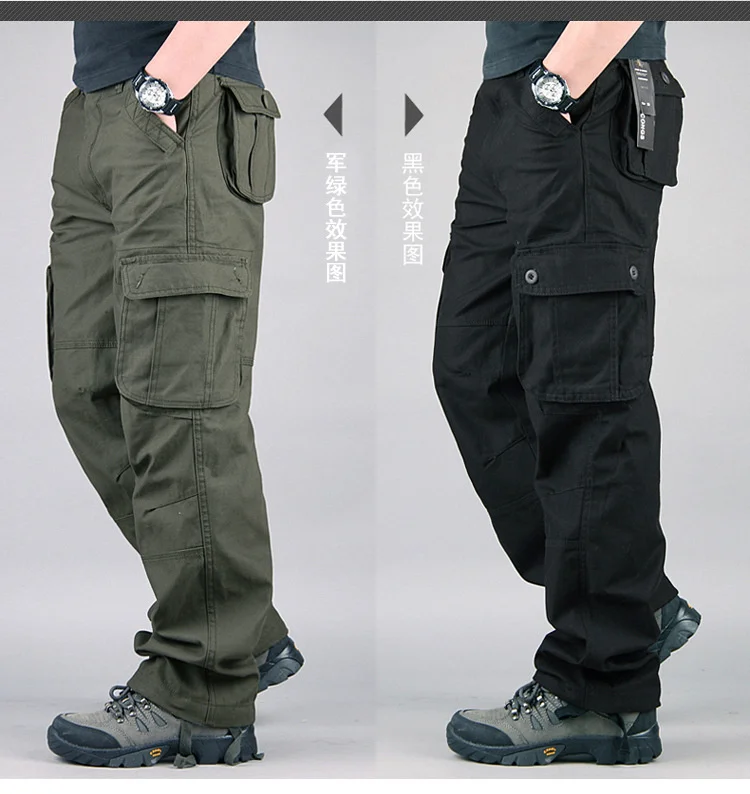 Брендовые военные брюки-карго, мужские однотонные брюки с несколькими карманами, мужские брюки на открытом воздухе, мужские тактические брюки из хлопка высокого качества, большие размеры