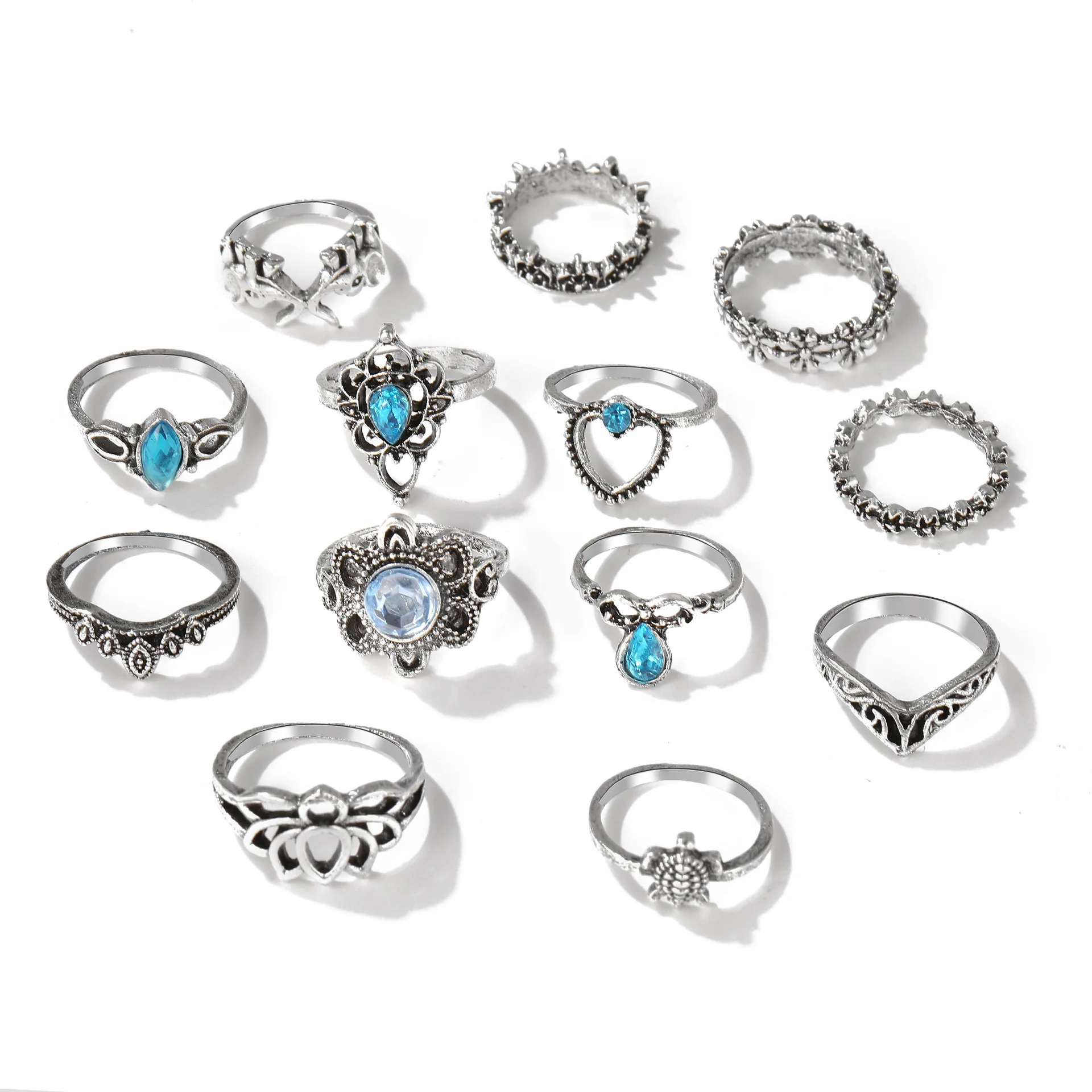 13 шт.компл. в богемном стиле цветок лотоса море кольца с украшением в виде черепахи комплект ювелирных изделий для женщин Голубой цирконий ювелирные Bague Роковой Женщины Кольца Ювелирные изделия 2021