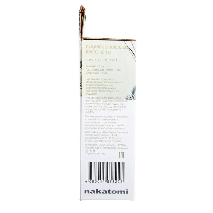 Мышь Nakatomi MOG-21U Gaming, игровая, проводная, 7 кнопок, 2400 dpi, USB, чёрная 2691496