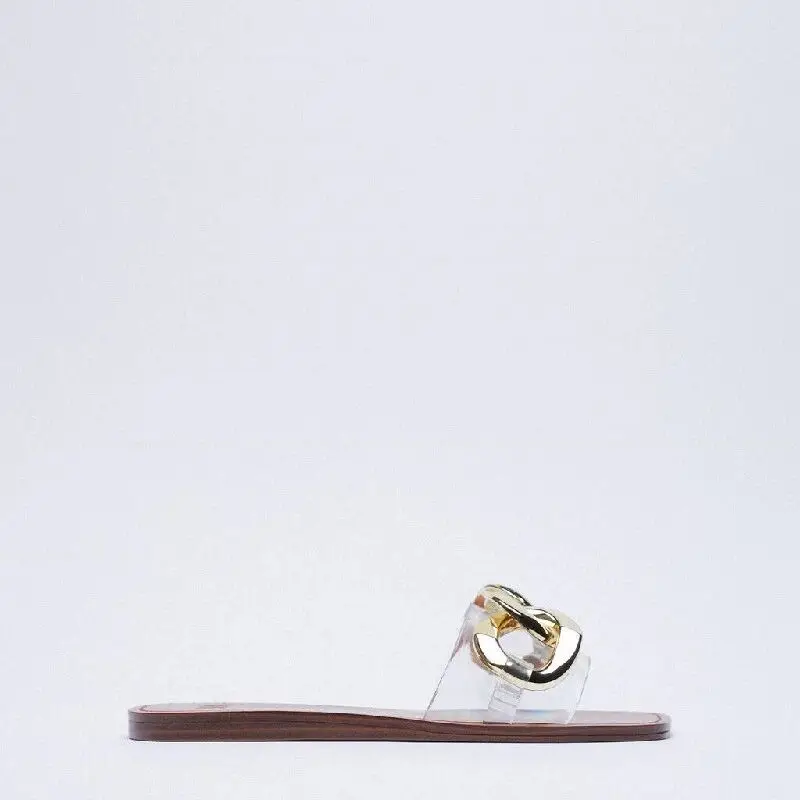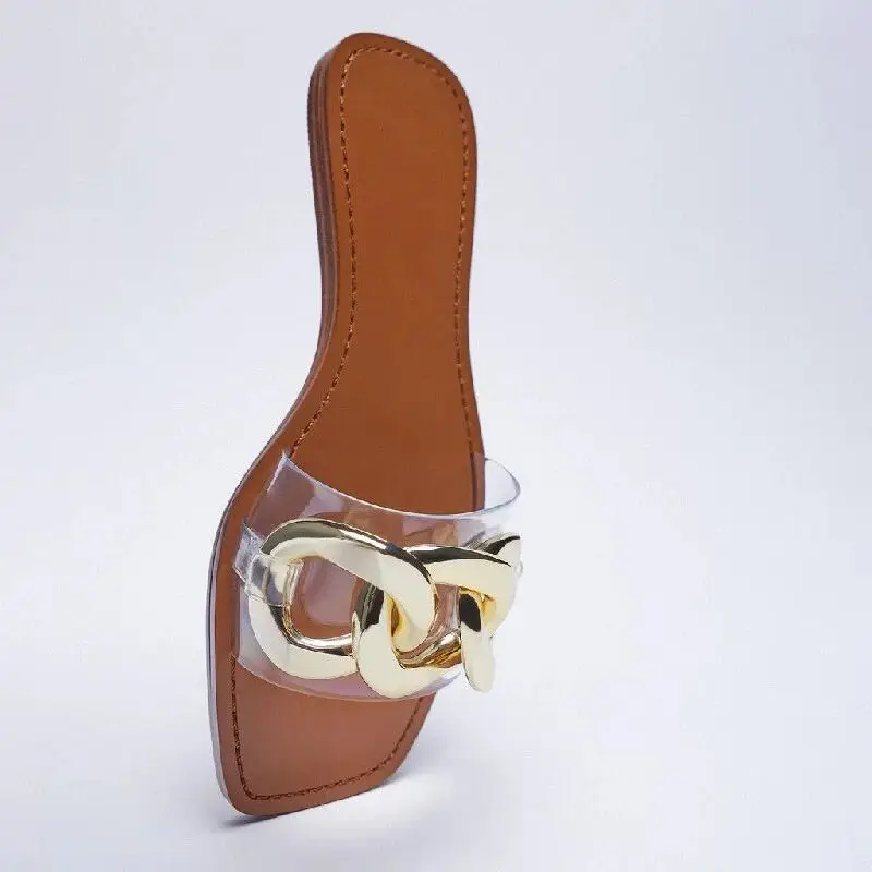 Женские сандалии на плоской подошве, прозрачные, с металлической це...