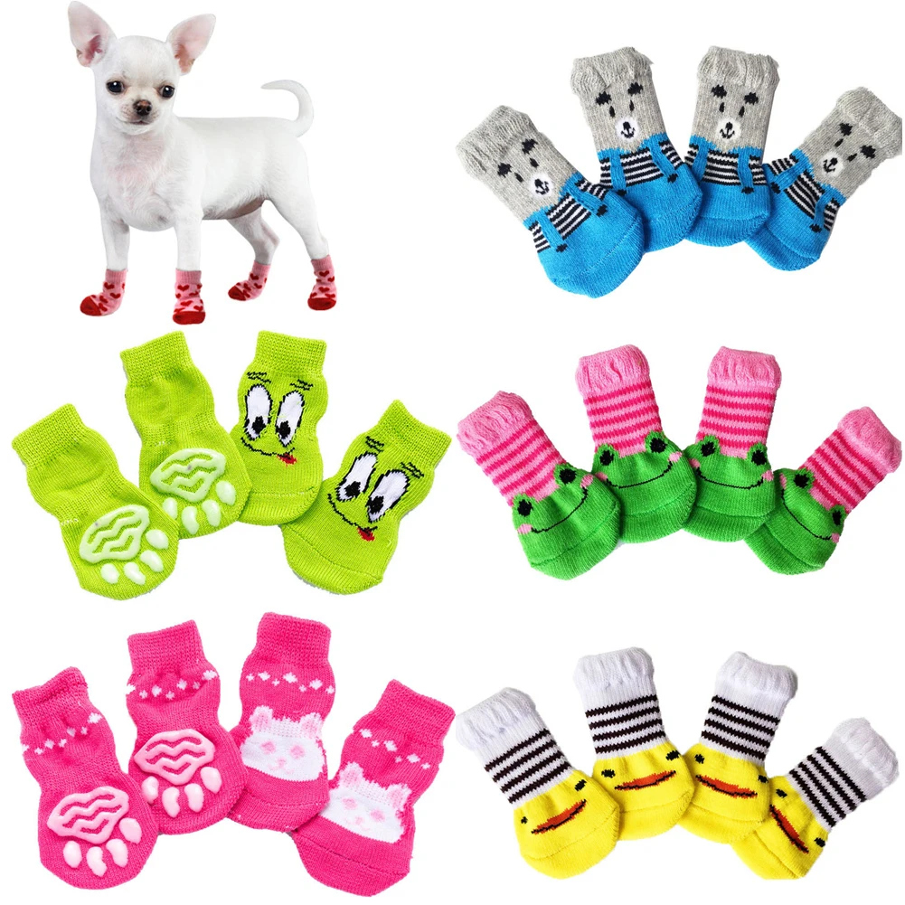 Носки с принтом для маленьких пород собак, Нескользящие, защита лап, обувь для кошек и щенков, 4 шт.