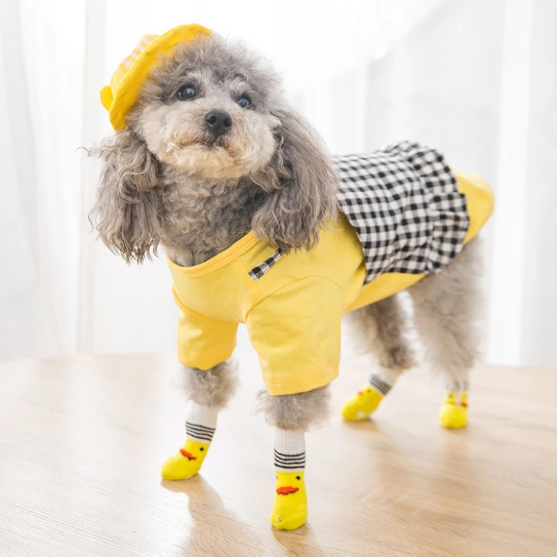 4 шт., милые носки для собак, с принтом, противоскользящие, для кошек, щенков, обувь, защита лап, товары для маленьких пород, Шпиц, йоркские собаки, чихуахуа