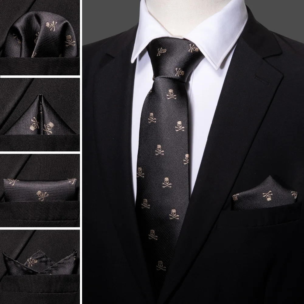 Мужской галстук с черепом, запонки для носовых платков, Вечерние ше...